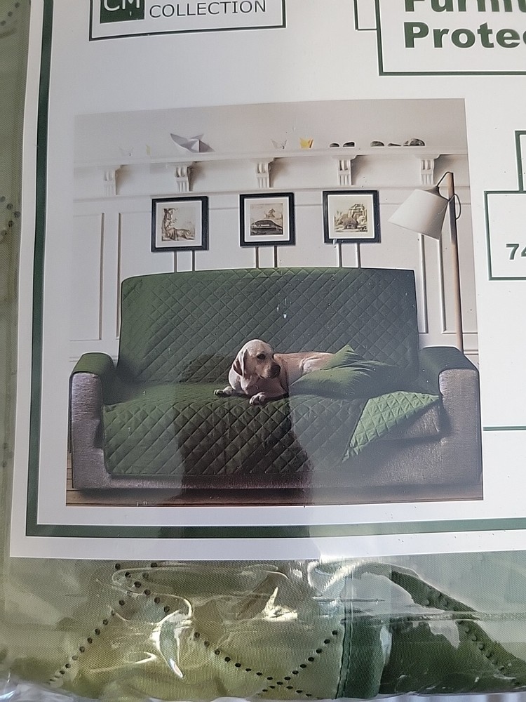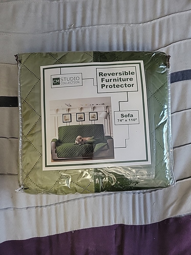 Dress up your sofa with this beautiful slipcover from CM Studio Collection. Made of 100% polyester, it is machine washable and features a reversible and quilted design. The slipcover is suitable for a 3-seater sofa with dimensions of 110" in length and 74" in width. The green color and solid pattern add a touch of elegance to your home decor. This slipcover is perfect for protecting your sofa from everyday wear and tear. Get your hands on this BNIP (Brand New In Package) CM Studio Collection Reversible Furniture Protector/Slipcover and give your sofa a fresh new look.