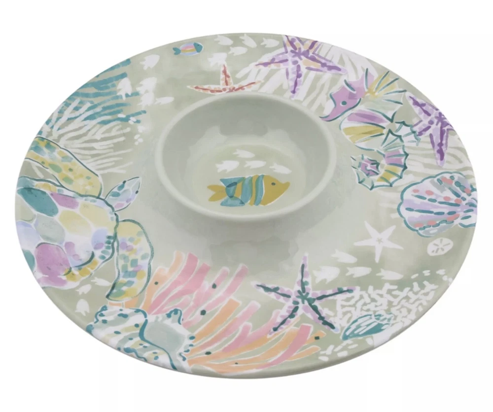 New with Tags 18-30 5-40 Jazz up your meals with this Celebrate Together summer coastal chip and dip platter. CONSTRUCTION & CARE Melamine Dishwasher safe top rack only Safe to 200°F DETAILS 15"DIA 1 serving platter included