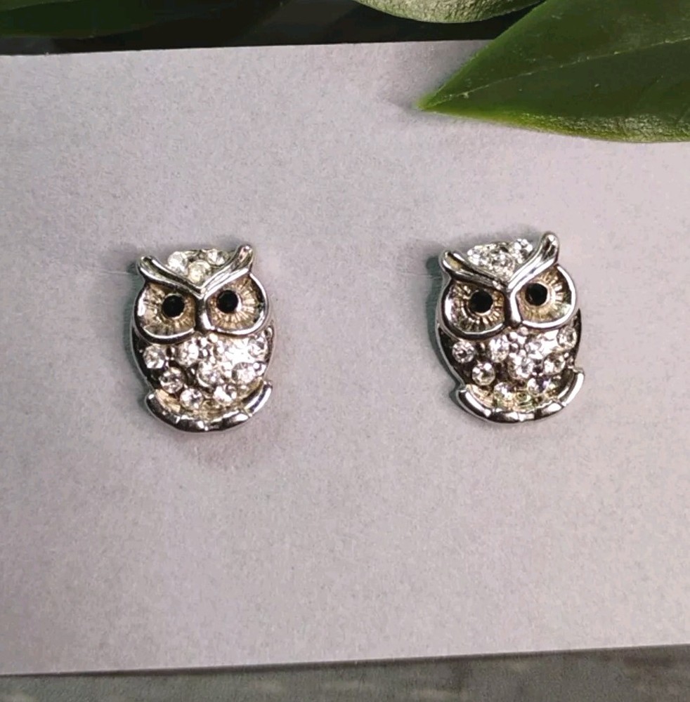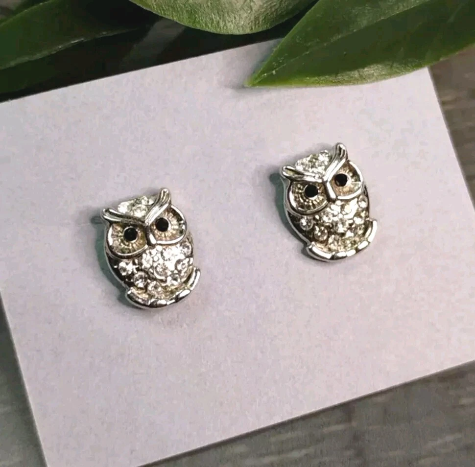 CUTE! Owl Earrings Made w/Clear SWAROVSKI Crystals, Black Eyes, Silver Tone! ("Absolutely adorable little owl earrings! Very gently preloved condition with all stones intact. See pics for more visual info including measurements. Shipped with care!") Thanks for stopping "buy" and Thanks in Advance for your purchase!
