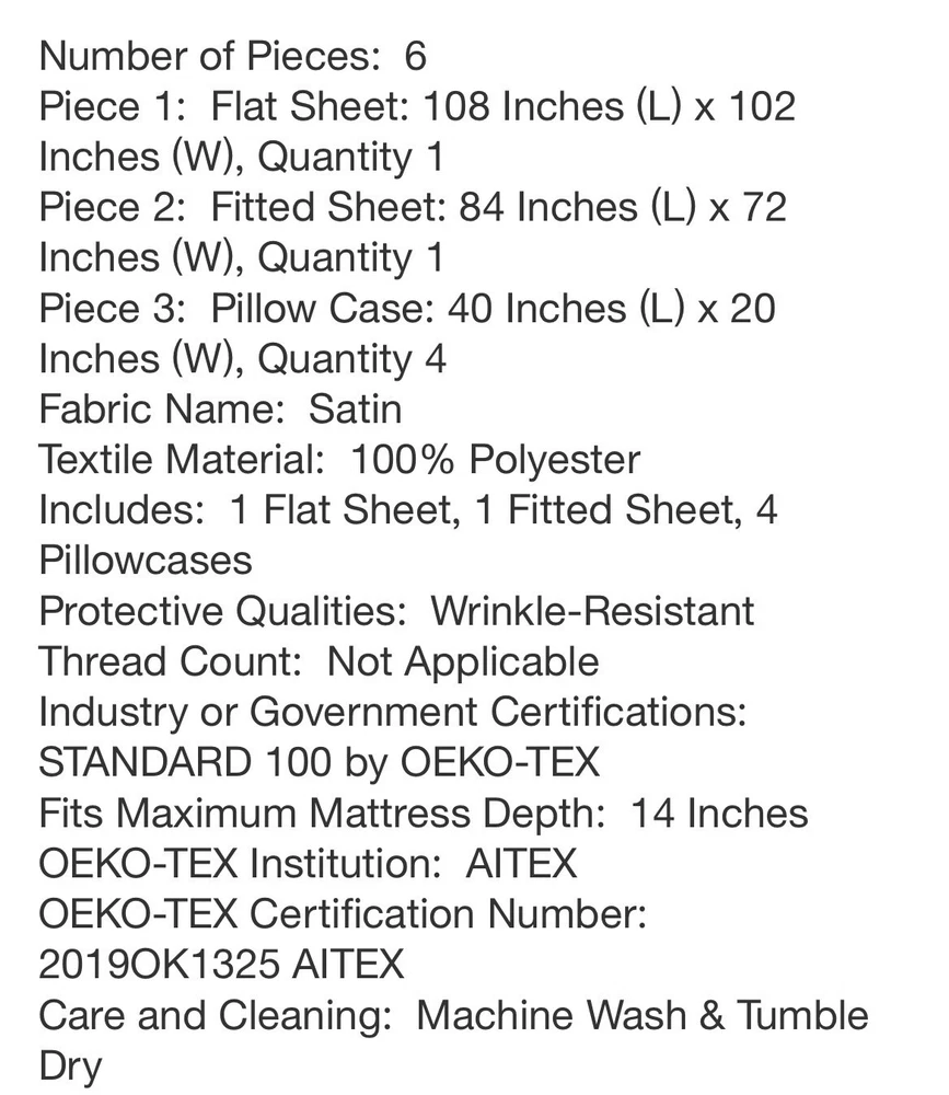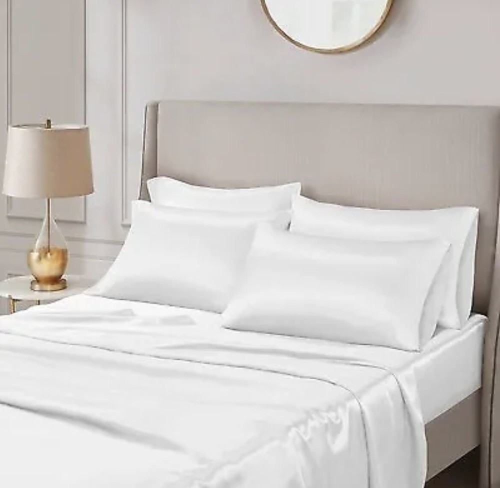 New white satin sheets CA king size....