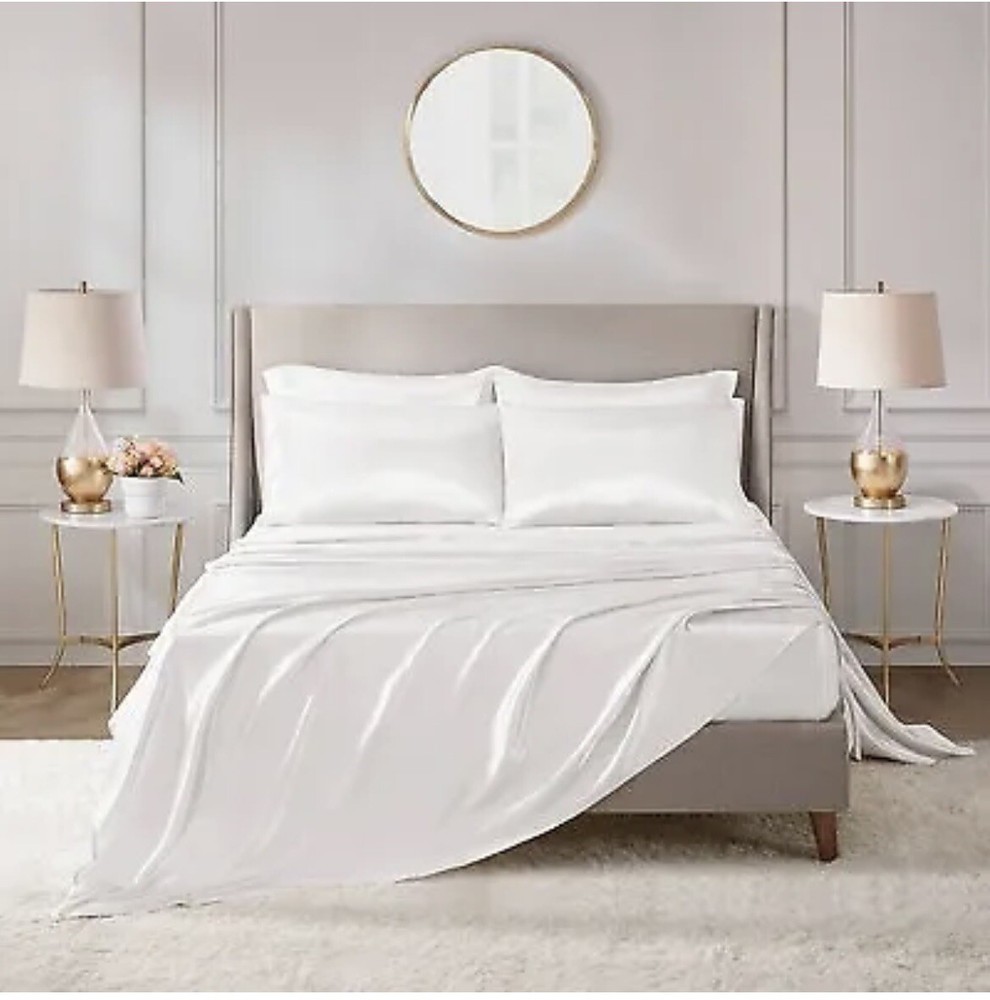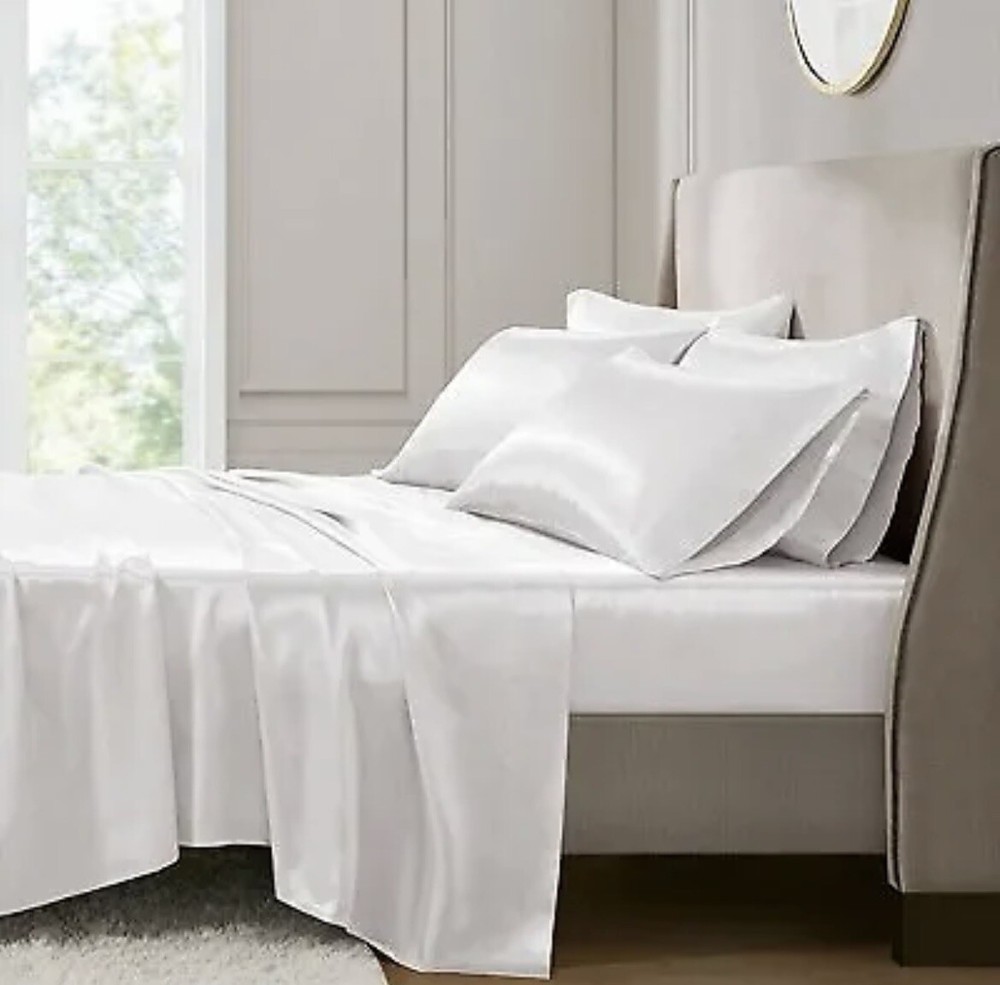 New white satin sheets CA king size.