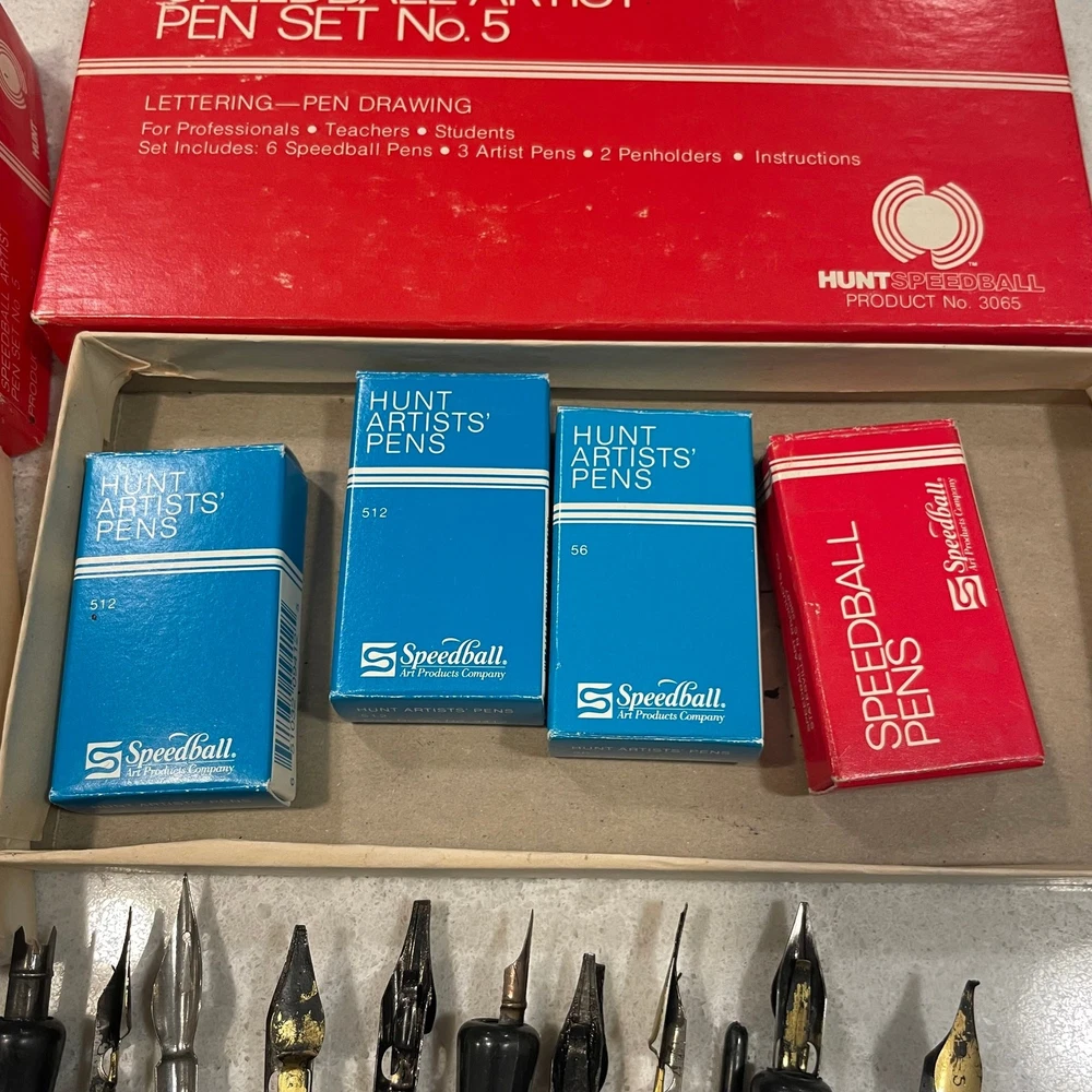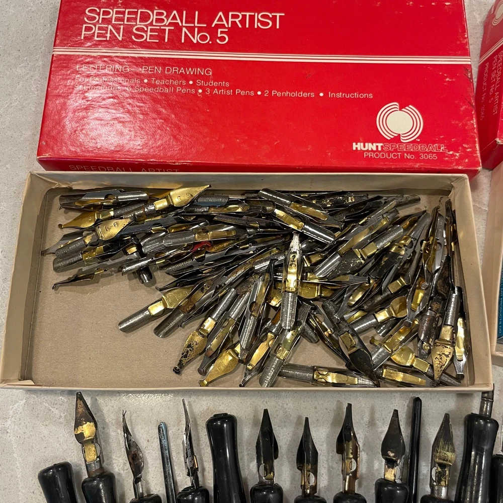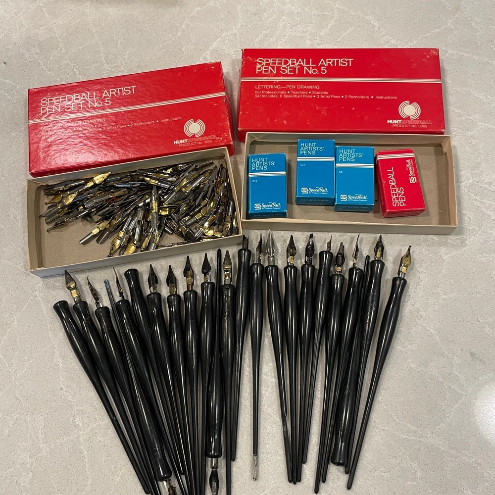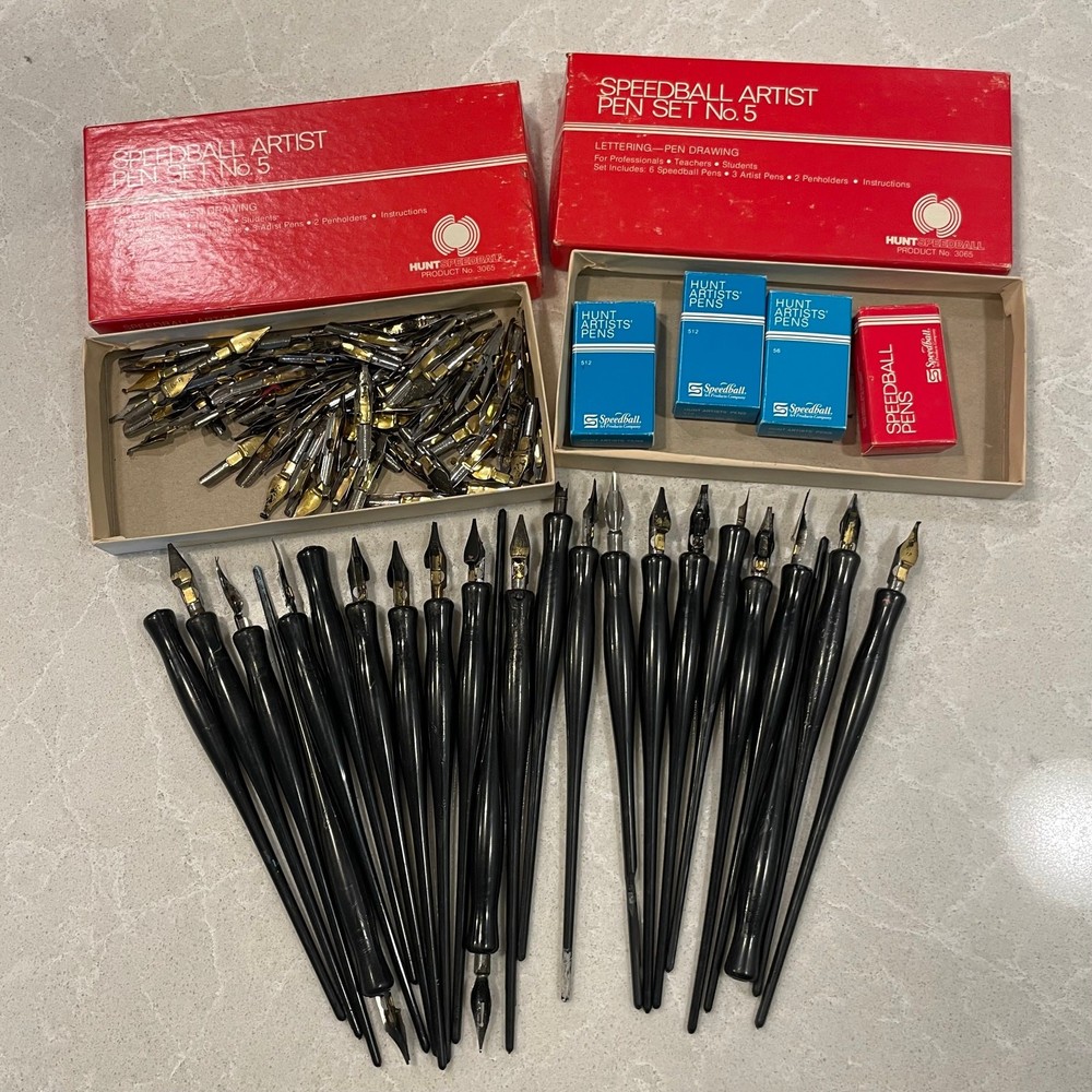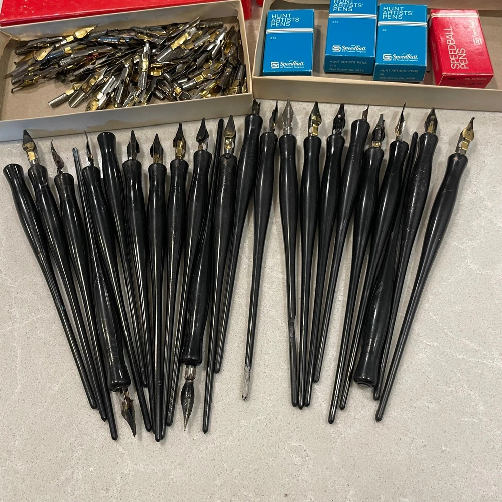 This large lot of vintage calligraphy dip pens is a treasure trove for artists! The mix of Speedball and Hunt nibs offers great variety, and while most are pre-loved, they’re packed with character. A fantastic deal for anyone passionate about calligraphy—just be sure to check the pics for details. Love the vintage charm!
