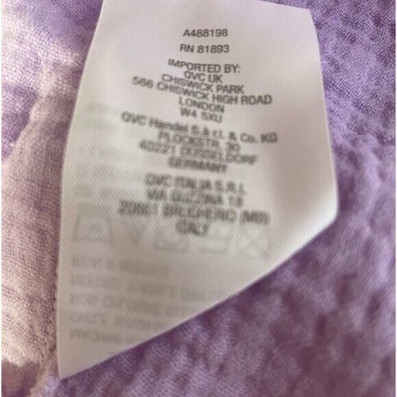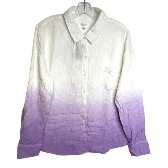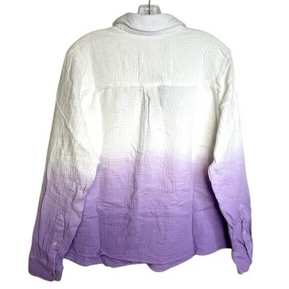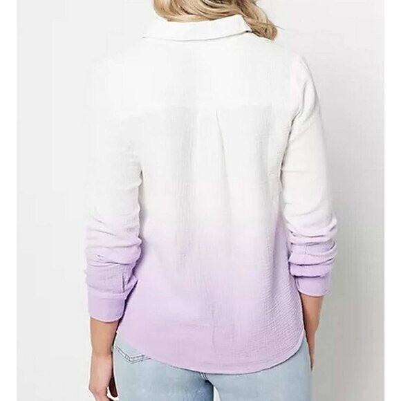 NEW!! Woven. Collar, button-down, bust dart Patch pockets, shirttail hem, tie-dye design Semi-fitted; follows the lines of the body with added wearing ease Approx: 25" length, 49" bust 100% cotton Machine wash, tumble dry Pet/Smoke free environment THIS IS NEW!! 488198