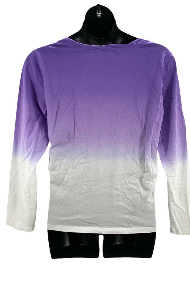 Fabrication: knit Features: scoop neckline with twist detail, dip-dye, straight hem, long sleeves Fit: semi-fitted; follows the lines of the body with added wearing ease Length: missy length 24-1/2" to 26-5/8"; plus length 27" to 30-1/2" Content: 100% cotton Care: machine wash, tumble dry