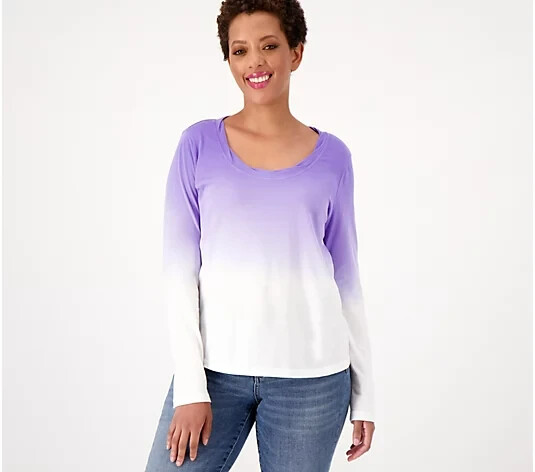 What's on your summer to-do list? Jam-packed days make it hard to plan out a fab 'fit (we totally get it!). Enter: Candace Cameron Bure's newest staple. Whether you're reading a great book shore-side, driving the kids to allll the activities, or taking a peaceful morning walk with the sunrise, this long-sleeve tee delivers sought-after laid-back-chic vibes. And thanks to the flattering scoop neckline, dip-dye detail, and lightweight feel, this top-of-the-line top will have you instantly falling in love. Pair it with jeans on balmy summer nights or tucked into high-waisted shorts on breezy mornings. Plus, it'll carry you right into fall (styled under a cute denim jacket) -- apple picking, anyone? From Candace Cameron Bure. Fabrication: knit Features: scoop neckline with twist detail, dip-dye, straight hem, long sleeves Fit: semi-fitted; follows the lines of the body with added wearing ease Length: missy length 24-1/2" to 26-5/8"; plus length 27" to 30-1/2" Content: 100% cotton Care: machine wash cold delicate cycle, only non-chlorine bleach when needed; tumble dry low; warm iron if needed Imported THIS ITEM IS ELIGIBLE FOR AN ADDITIONAL $4.00 COMBINED SHIPPING FEE PER EACH ADDITIONAL ITEM PURCHASED