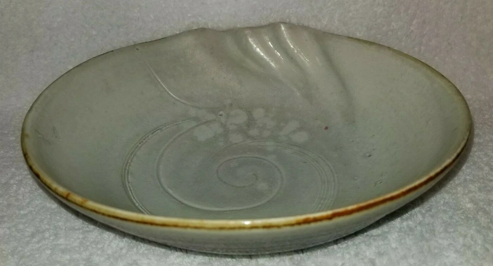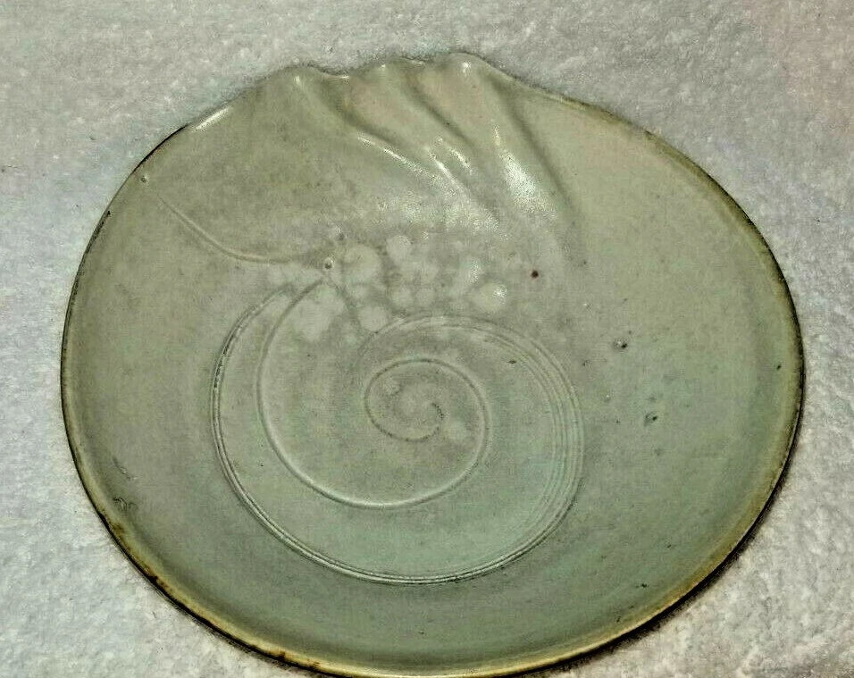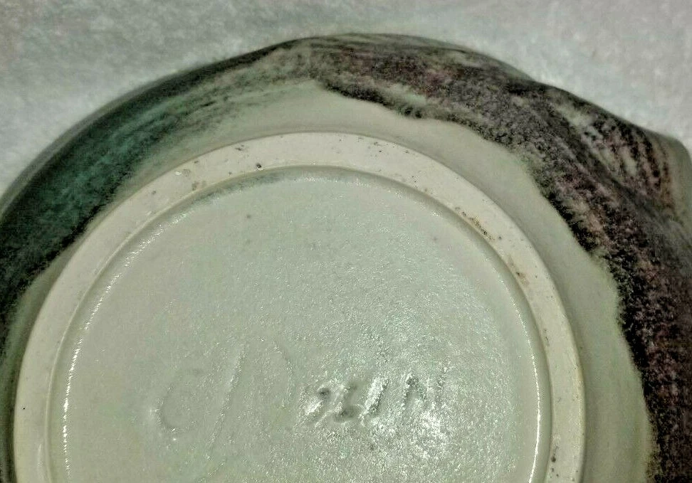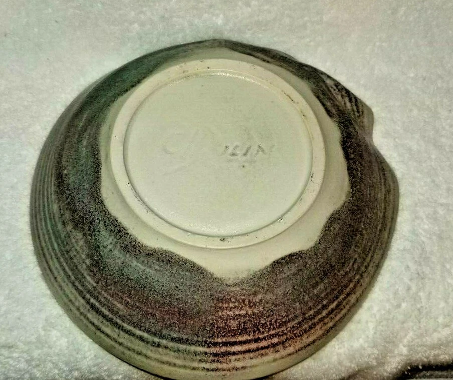 Studio Art Pottery Bowl by Carolyn Dulin Signed C Dulin on the bottom~Michigan Artist. Deceased. Shaped round and like a nautilus seashell The sides are just as beautiful as the inner bowl~see photos. Measures~ 9 x 9" Bottom- 4 1/2 x 4 1/2" 2 3/4" tall and deep Preowned. No chips or cracks. A beautiful piece of work to use or display. Thanks for looking!