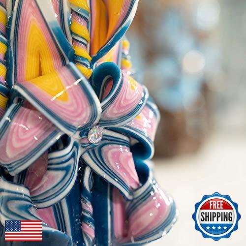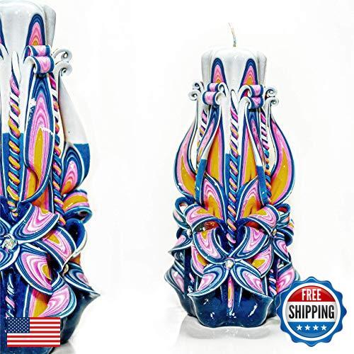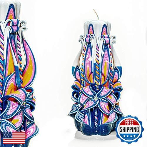 Carved Candle Artisan, Handcrafted Decorative Dipped Candle, Home Decor, Fancy Unique Birthday Gift, Mother's day, Large Candle, Present for mom, Blue Yellow, Majestic 8" Features Choose Your Ideal Size: From small (5") to large (9"), find the perfect carved candle for any area in your home. They add beauty and functionality to any space. Beautiful and Practical: Each candle combines stunning, handcrafted design with practicality, making them ideal for both decoration and lighting. The Perfect Unique Gift: Stand out with our carved candles. Ideal for birthdays, weddings, and special occasions, they offer more than just a gift β they create lasting memories. Unmatched Craftsmanship: Experience the quality in every hand-carved detail. Our candles are made with precision and care, ensuring consistent artistry. Reliable, Eco-Friendly Packaging: We ensure each candle is safely delivered in environmentally responsible packaging, so it arrives at your doorstep in perfect condition. Shipping Free & Fast Shipping: We offer free shipping to most of the USA with a normal delivery time of 3-7 days. However, due to the current situation, additional delivery time (up to 3 weeks) may be required for some items. Alternative Carriers: We may use alternative carriers (e.g., USPS, FedEx, UPS) to ensure your package arrives safely and on time. Due to the use of multiple carriers, we are unable to provide a tracking number automatically. Handling Time: Orders are processed and shipped within 1-2 business days of receiving cleared payment. Shipping Restrictions: Shipping to Alaska, Hawaii, Puerto Rico, Guam, and other US territories may incur shipping charges or delivery restrictions. Please contact us before ordering, or your order can be refunded/cancelled. State Restrictions: Certain items may not be shipped to California due to state regulations. Contact for Tracking Updates: If you require tracking updates or have any concerns about the delivery of your order, please feel free to contact us, and we will be happy to assist you. Return Policy 30-Day Hassle-Free Returns: If you are not completely satisfied with your purchase, you can return the item for free within 30 days of receiving it for a full refund or exchange. Easy Return Process: Contact us, and we will provide you with a prepaid return shipping label and detailed instructions. No Restocking Fee: There are no restocking fees for returns. However, the buyer is responsible for return shipping costs if the return is not due to a seller's error. Refund Processing: Refunds will be processed within 1 business day of receiving the returned item in its original condition. Payment We accept all major credit cards, PayPal, and Apple Pay for your convenience. Your payment information is secure and encrypted to ensure a safe and seamless transaction. Please complete your payment within 3 days of purchase to avoid any delays in shipping. Feedback Your feedback is extremely important to us. We strive to provide the best products and customer service possible. If you are satisfied with your purchase, please take a moment to leave us a positive review. If you have any concerns or issues with your order, please contact us before leaving negative feedback. We are committed to resolving any problems and ensuring your satisfaction. Contact Us If you have any questions or concerns, please feel free to reach out to our customer support team. You can contact us through the eBay messaging system. We are available Monday to Friday, 9:00 am to 5:00 pm EST, and we will do our best to respond to your inquiry within 24 hours. Thank you for supporting our small family business!