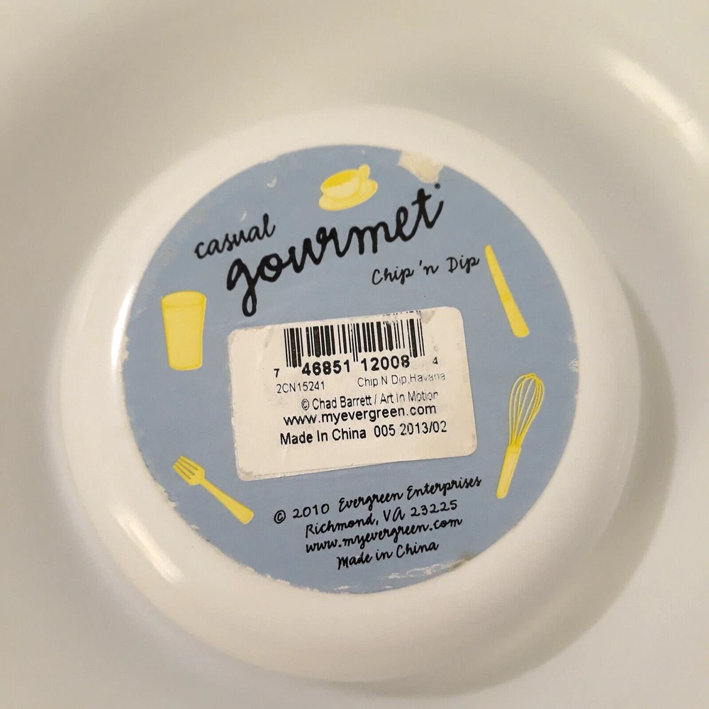 Casual Gourmet Chip 'n Dip Platter 13" Palm Tree Chad Barrett Art in Motion 2010 Excellent pre-owned condition. No visible signs of use. The pictures are part of the description. Please enlarge and carefully review all the photos so you can decide if the condition is acceptable to you. Any questions, please ask. Thanks for looking!