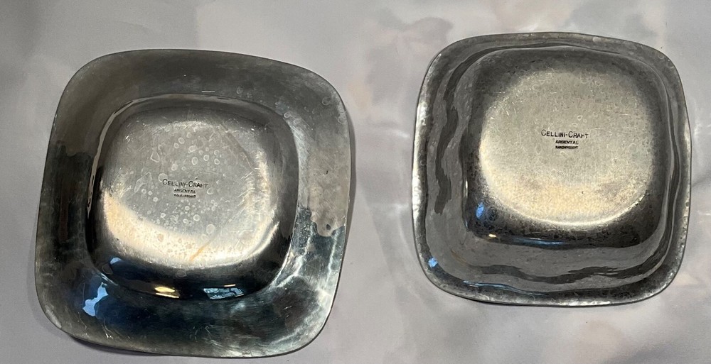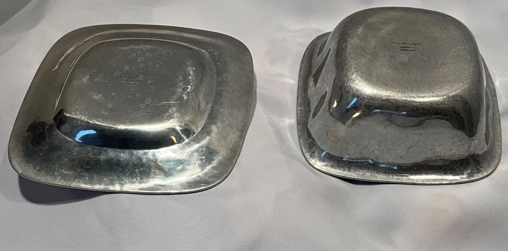 ~ Cellini Craft Bio ~ IN CHICAGO, HANS CO-FOUNDED CELLINI CRAFT, PRODUCING HOLLOWARE AND FLATWARE IN STERLING AND A LINE OF ALUMINUM WARE CALLED “ARGENTAL”, WHILE ELIZABETH RAN A DRESSMAKING BUSINESS. AFTER RELOCATING TO CALIFORNIA IN 1952, HE AND ELIZABETH FORMED GRAG STUDIOS AND STARTED DESIGNING AND FABRICATING LIGHTING FIXTURES FOR GUMP’S. ~ THE FAMILY BUSINESS, LOCATED ON A RANCH IN THE FOOTHILLS OF NORTHERN CALIFORNIA AND NOW IN ITS THIRD GENERATION, HAS SPECIALIZED IN CUSTOM DESIGN AND HAND CRAFTING OF FINE METAL WORK SINCE 1927 WHEN HANS GRAG FIRST ARRIVED IN CHICAGO FROM HIS NATIVE GERMANY. - These pieces are in beautiful used condition with some light scratches and patina ~ 🚐 Ships to you or your Loved ❤️ One ASAP 👀👀👀 Please take a moment to view my other EBAY listings for cool deals