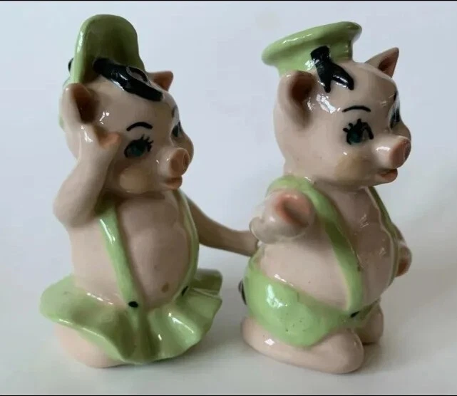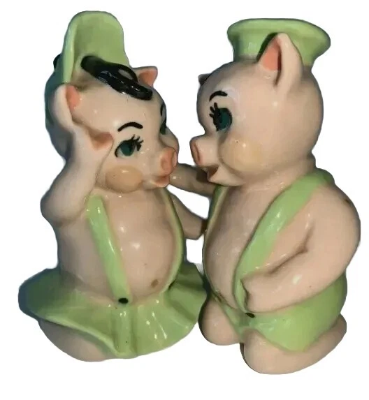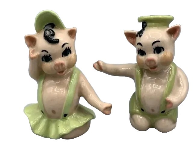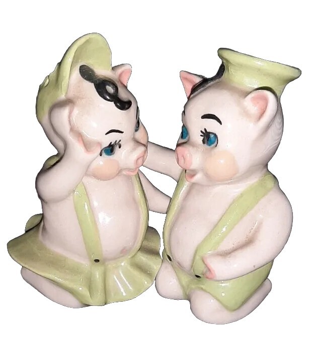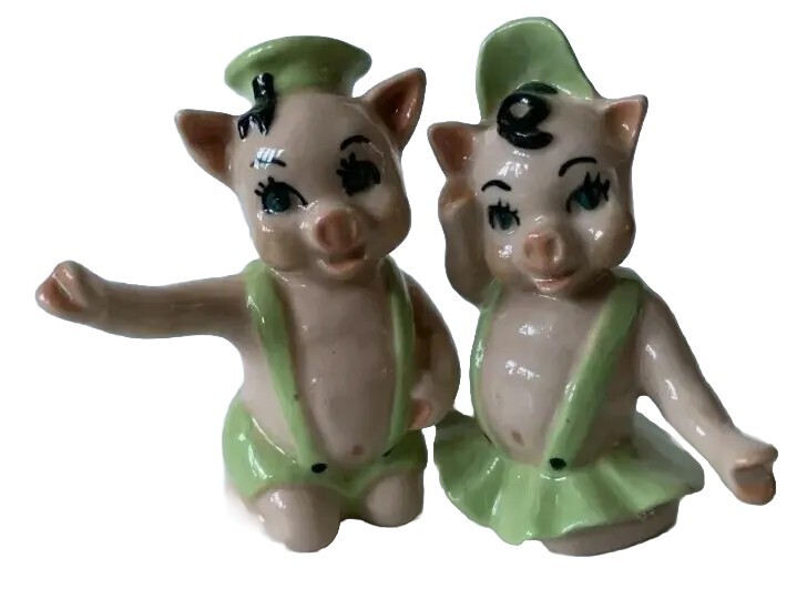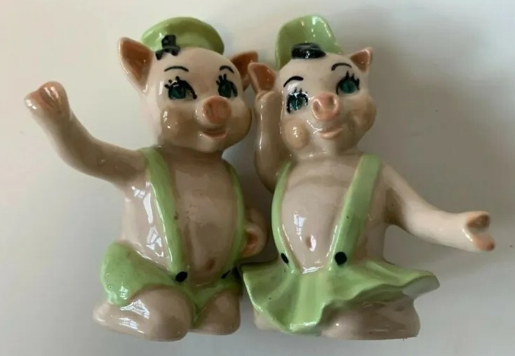 Created in the 1950s by the Ceramic Arts Studio of Trenton, NJ, these adorable pigs stand 3.25" tall by 2.5" wide. They were designed by artist Betty Harrington. These shakers are in excellent shape, ...