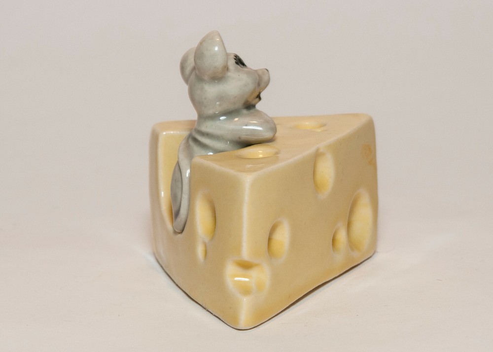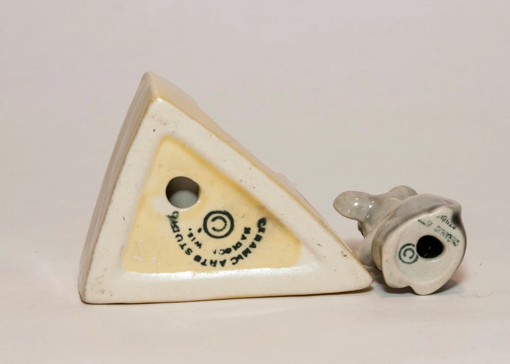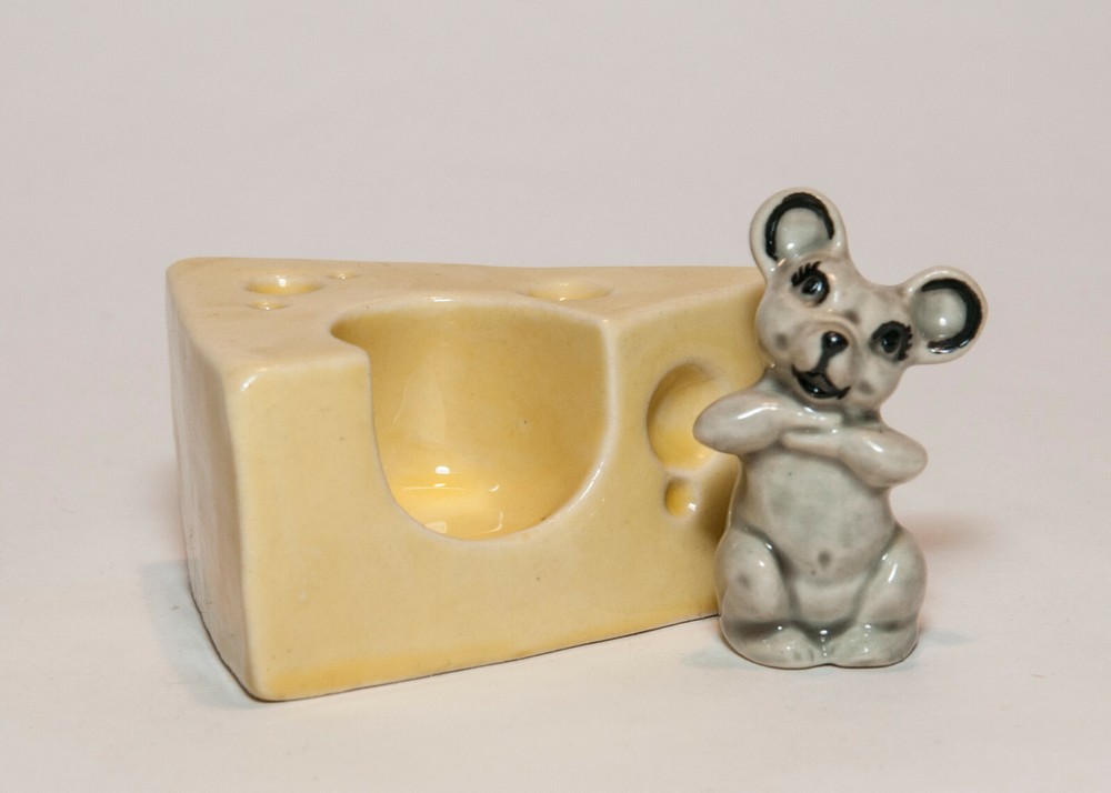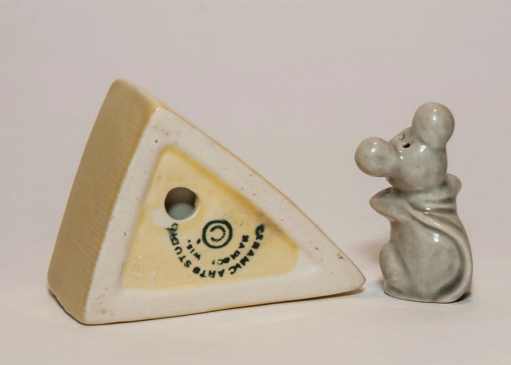 This wonderful Ceramic Arts Studio set of shakers are nicely crafted and a great addition to any collection. The set is 2 1/2"s tall when the mouse is standing in the cheese. This is in excellent condition.
