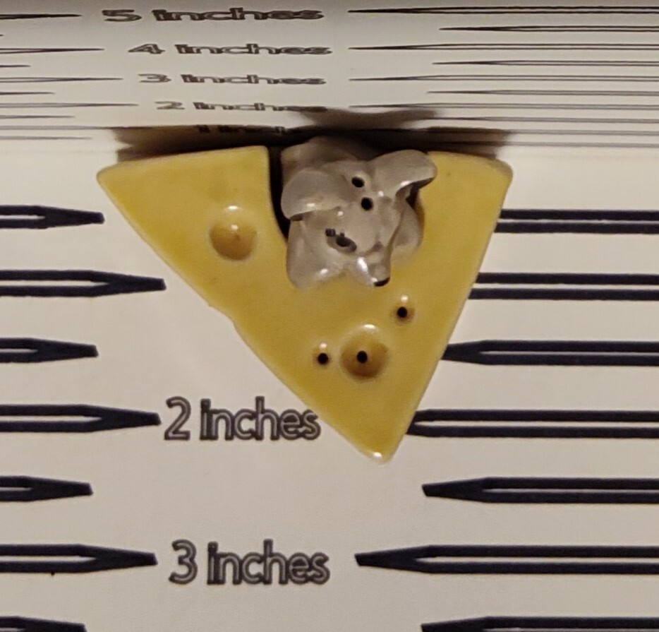 Absolutely adorable and in perfect condition! The tiny mouse sitting in cheese adds such a playful touch to the table. The ceramic feels sturdy, and the details are charming—great for cheese lovers or anyone who enjoys quirky kitchen decor. A fun, functional conversation starter!