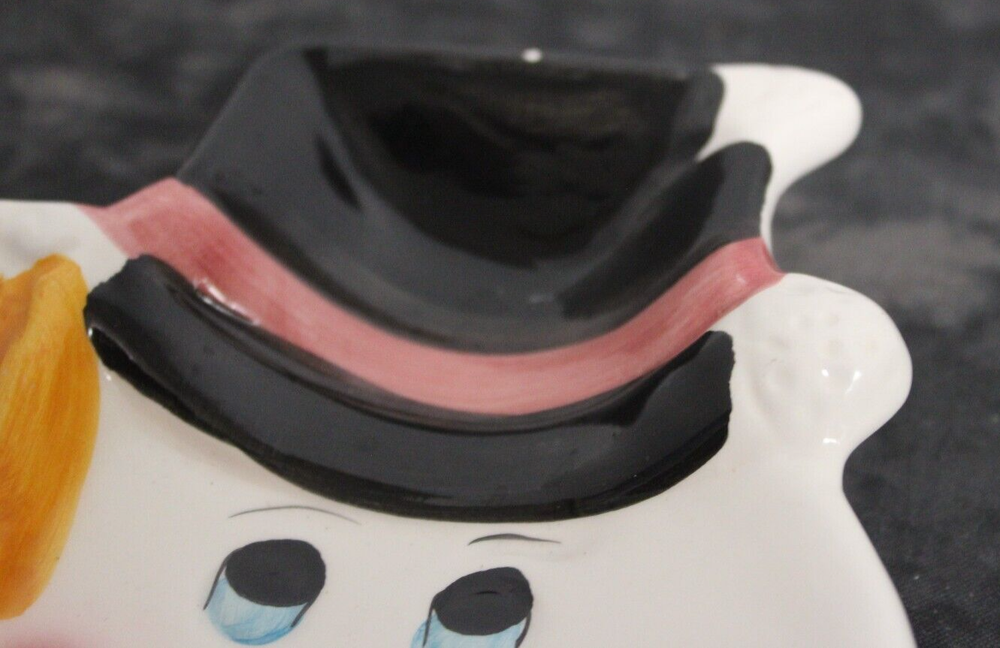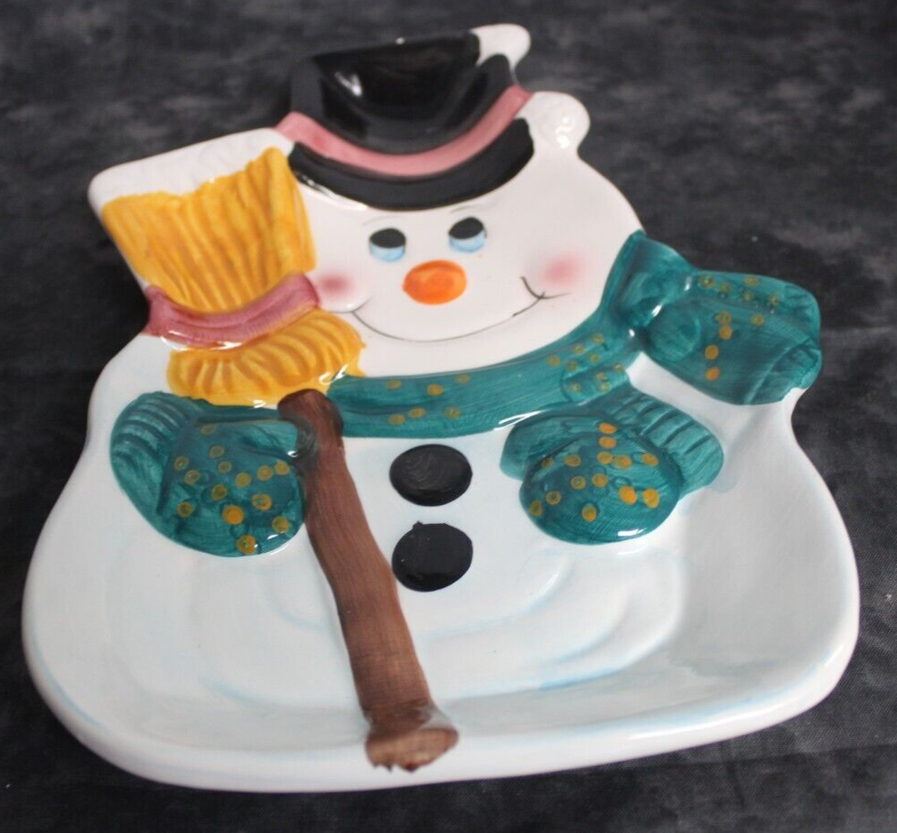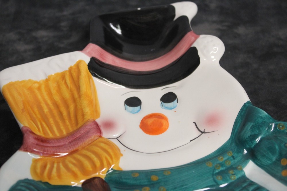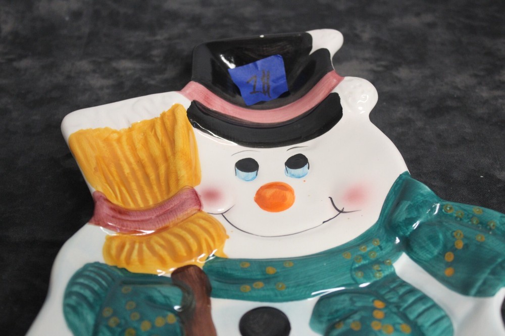 Add a festive touch to your holiday table with this Ceramic snowman-shaped holiday Veggie /Chip and dip platter. The platter features an abstract pattern with a glossy finish and is made of high-quality ceramic material. With one compartment and a large size of 10 inches in length and 7 inches in width, it's perfect for serving chips, dips, or vegetables. This contemporary-style chip holder is a great addition to your dinnerware collection, and its unique snowman shape makes it a perfect gift for Christmas. The platter is made in China and weighs 15.3 oz. Get ready to impress your guests with this charming and stylish holiday platter. Please see the pictures as they are part of my description. Thank you for visiting My store, please visit again as I list items often.