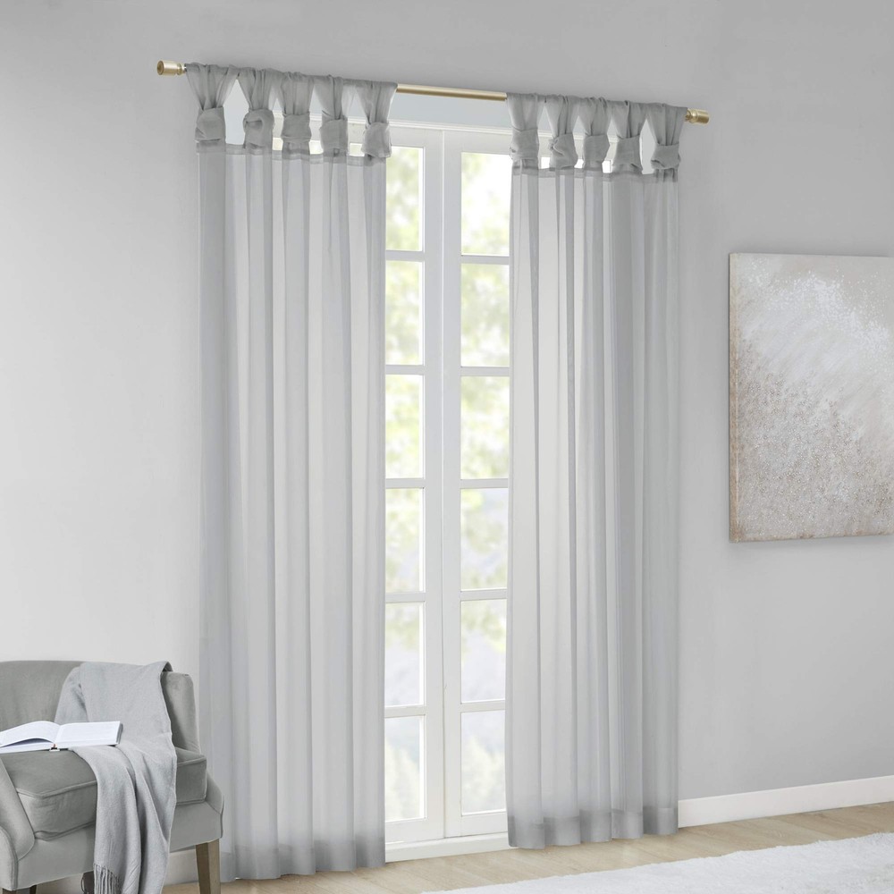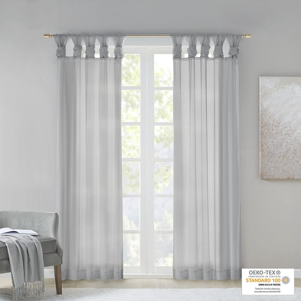 Soften your space with the Ceres Twisted Tab Voile Sheer Window Pair. This soft panel pair provides a simple and airy update to your decor, with its lightweight voile sheer base and delicate color palette for the perfect ethereal touch. The DIY twist tab top creates beautiful and delicate folds for a stylish decorator's touch. This window panel is also OEKO-TEX certified, meaning it does not contain any harmful substances or chemicals, ensuring quality comfort and wellness. Machine washable and easy to hang, open, and close throughout the day and fits up to a 1.25" diameter rod. This window panel pair is perfect on its own for a soft filter or layer with others for a dramatic effect. Soften your space with the Ceres Twisted Tab Voile Sheer Window Pair. This soft voile panel pair provides a simple and airy update to your décor. The DIY twist tab top creates beautiful and delicate folds for a stylish decorator's touch. Fits up to a 1.25” diameter rod. 2 Window Panels: 50"W x 84"L (2) Care instructions: machine washable