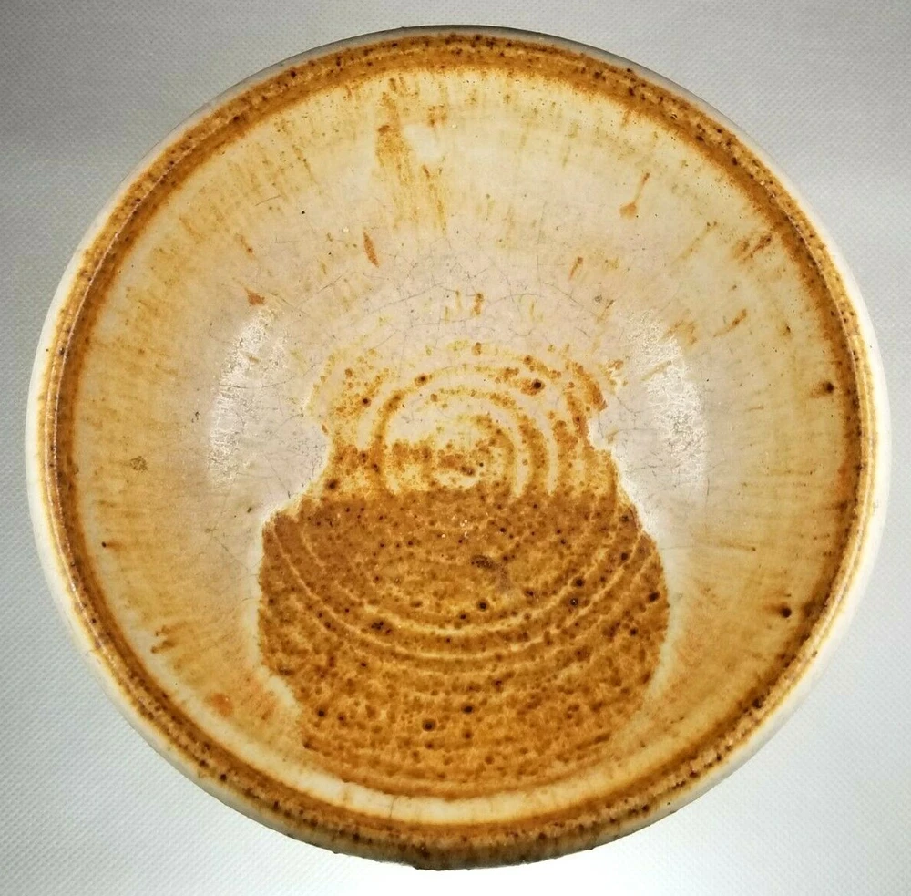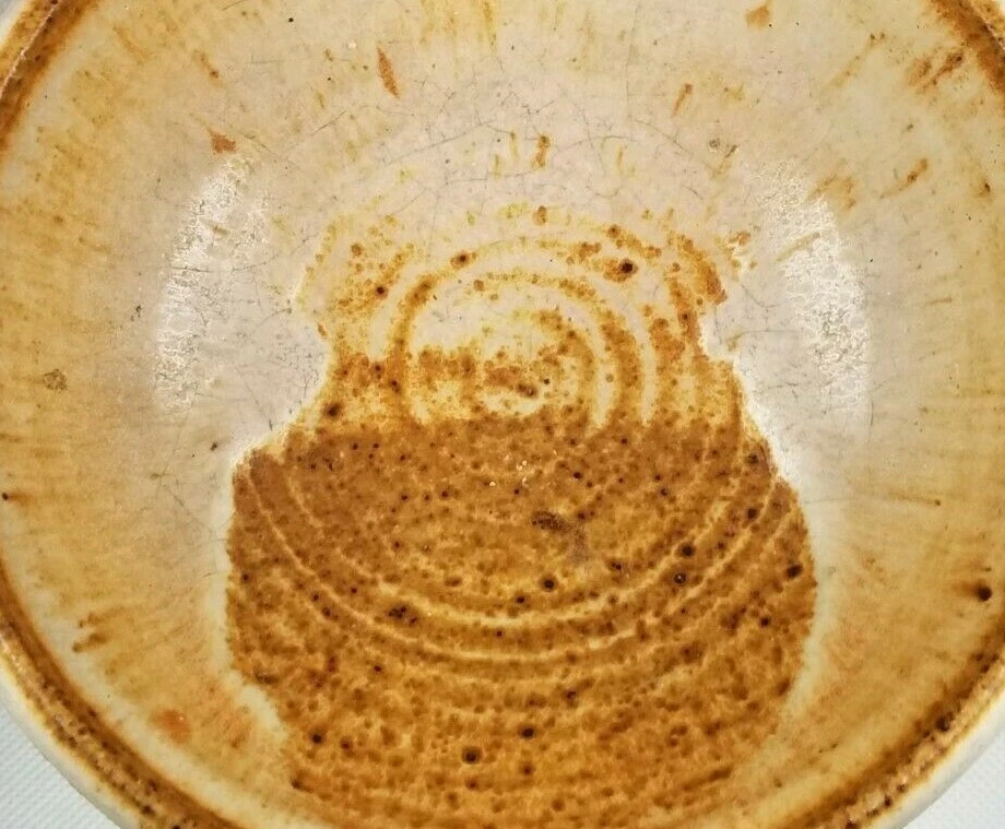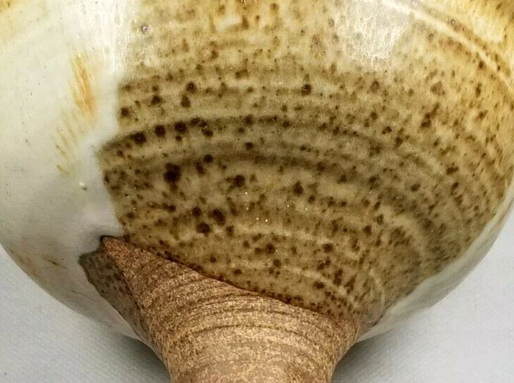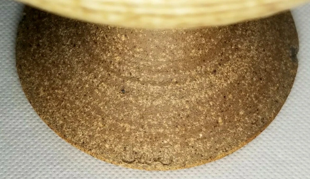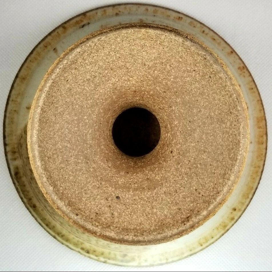American Art Studio Pottery Chalice Shaped Pedestal Pottery bowl appears to be illegibly Monogrammed along base ca. 20th century. Measures 5" high diameters: top 6" and bottom 3.5" appears to be in good condition as seen in the images. #18977J-137