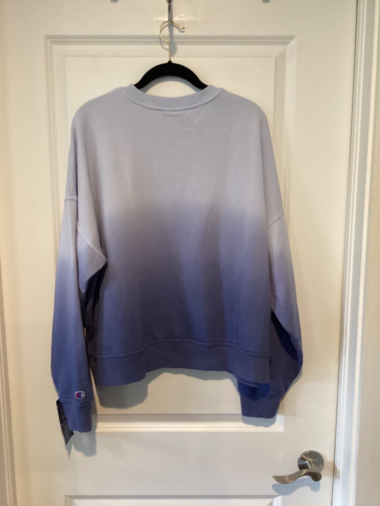 Elevate your activewear game with this Champion Relaxed Fleece Dye Crew Sweatshirt in Ombre Blue. The pullover style sweatshirt is designed for women and comes in a size 2XL. The fabric type is fleece which makes it perfect for cold mornings. The sweatshirt features a relaxed fit, making it comfortable for any occasion. Measures 25” in length. The blue color of the sweatshirt is perfect for adding a pop of color to your activewear wardrobe. The sweatshirt is made by Champion, a brand known for their quality products. This sweatshirt is perfect for any woman who wants to add a comfortable and stylish piece to her activewear collection.