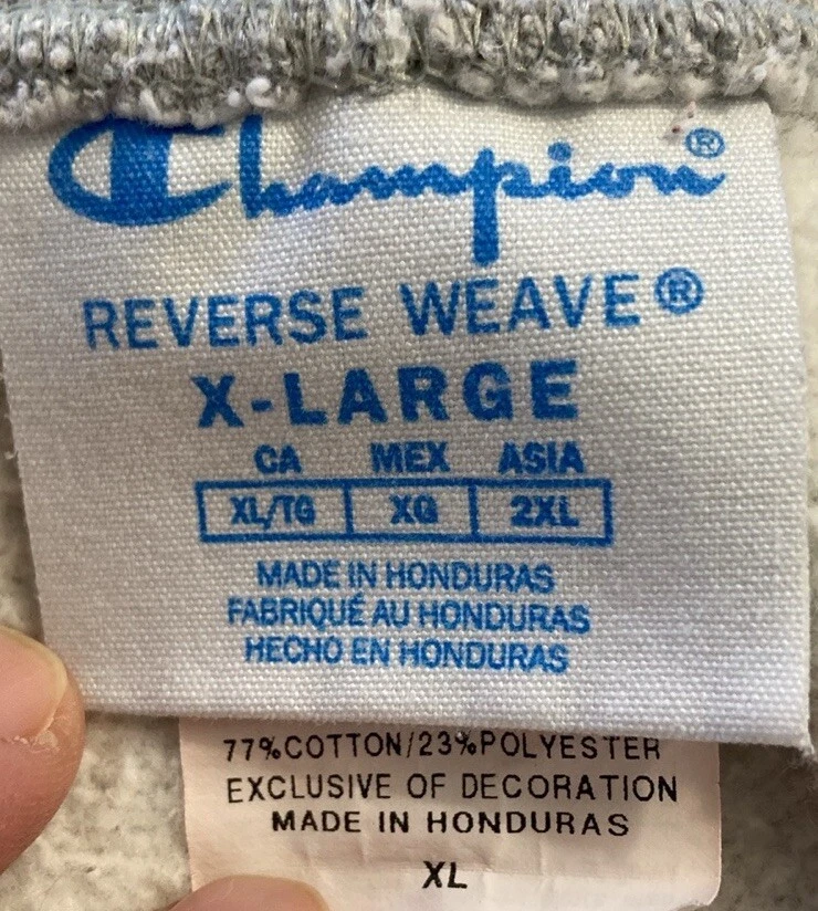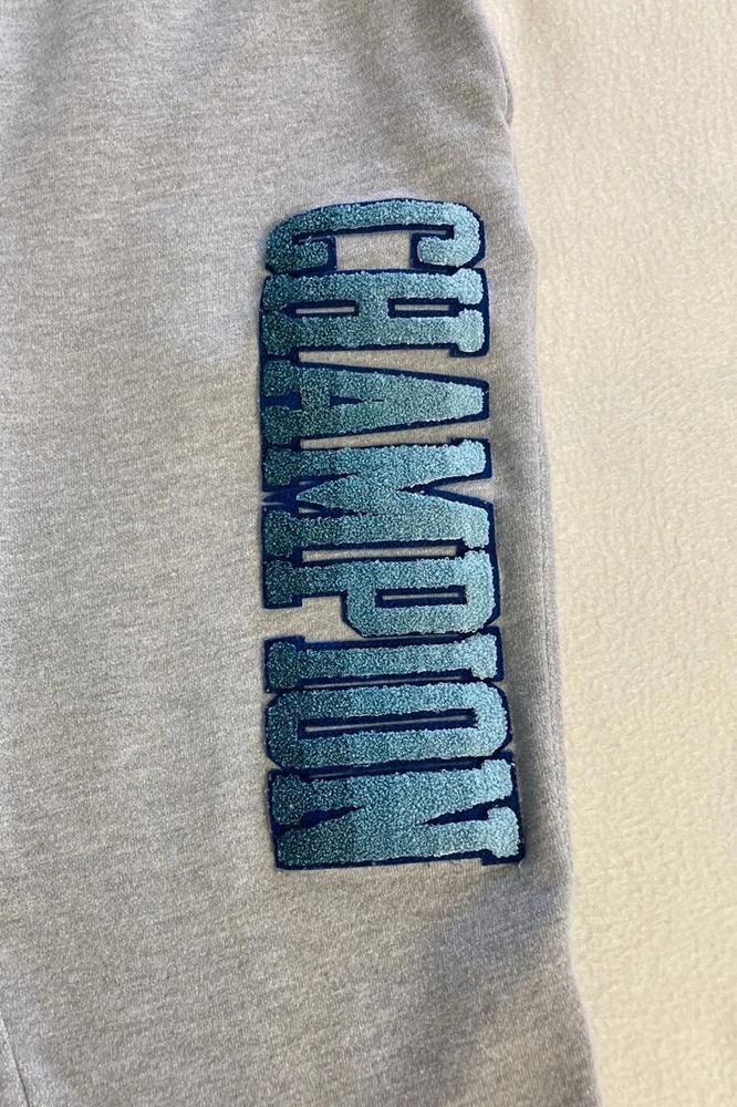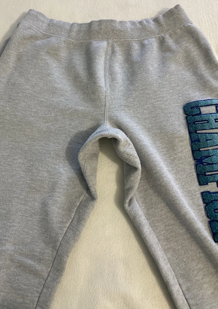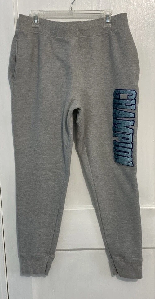 Champion Reverse Weave gray sweatpants joggers. Men’s size X -Large. Elastic waistband with a drawstring that ties inside. Cuffed legs . Two deep side pockets . One back pocket. Dip-Dye logo - CHAMPION- down side of left leg. 77% cotton and 23% polyester. Machine washable.