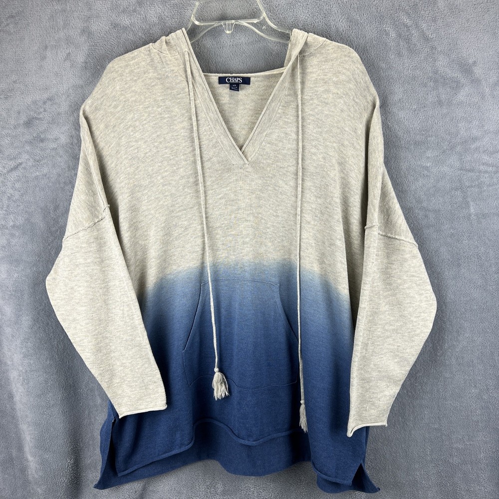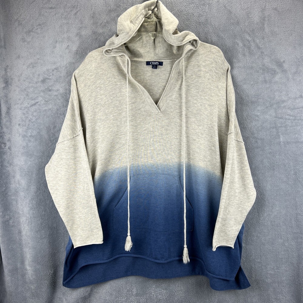 Chaps Hoodie Sweater Hooded Pullover Womens Large Oversized Oatmeal & Blue Dip Dyed V Neck Pouch Pocket Tasseled Ties Condition, Measurements, Shipping Preowned with no major flaws or stains unless stated otherwise. If there is a significant flaw, we will show it in the photos. Please note, measurements are approximate. Previous laundering may change the actual sizing. Please go by actual measurements instead of tag sizing to ensure the best fit. Stored in a smoke-free environment Free returns on unworn items - no questions asked. We want you to love your items! We offer discounts on multiple purchases so be sure and browse our store. Thank you for visiting Twinkletown Fashion. Be sure and check out our other store, Twinkletown Treasures (eBay ID ruskdesign1638)!
