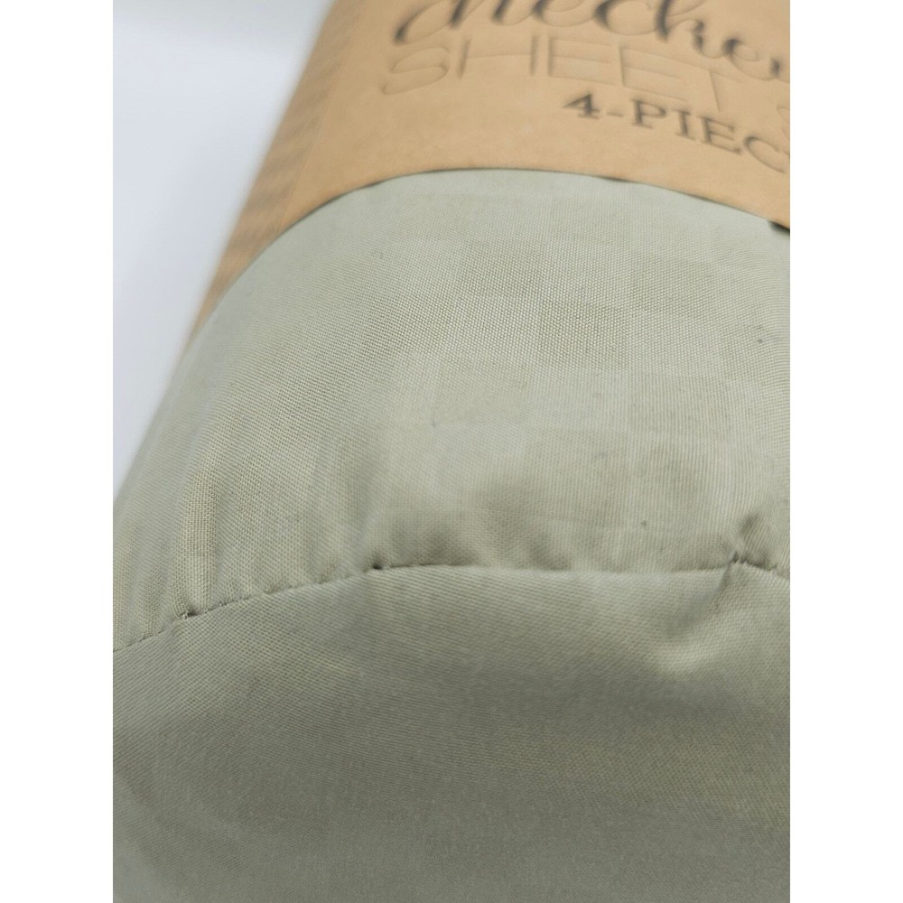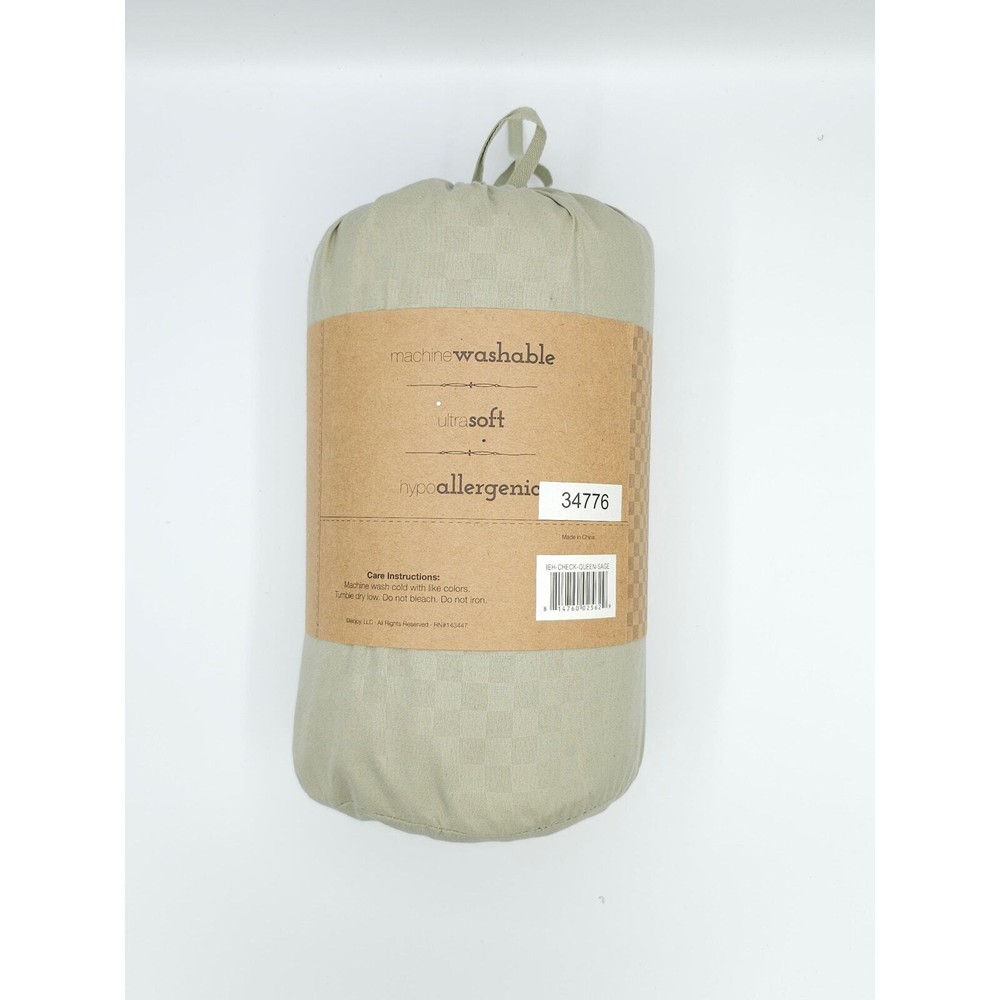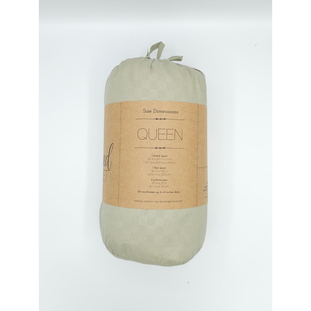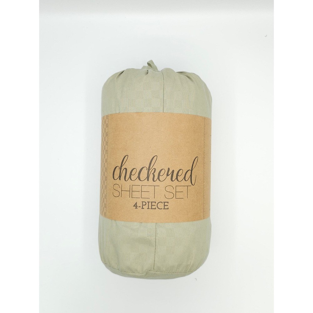 <![CDATA[<div>4 piece Queen size bedsheet set. Includes a fitted sheet, a flat sheet and 2 pillows. Fitted sheet 60 inches by 80 inches by 14 inches. Flat sheet is 90 inches by 102 inches. Both pillowcases are 20 inches by 30 inches. Fits mattresses up to 16 inches deep. 100% microfiber polyester. Queen size set. Faint checkered pattern as seen in last photo.