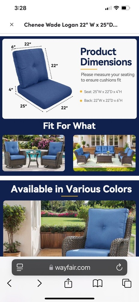 Enhance your outdoor living space with this Better Homes & Gardens Chenee Wade Logan 2-piece seat/back cushion set. Measuring 22 inches in length and width, these cushions are the perfect fit for your patio furniture. Made with high-quality materials, they provide deep seating comfort that will last for seasons to come. Designed with style and functionality in mind, these cushions feature a classic design that complements any outdoor decor. Whether you're hosting a backyard barbecue or enjoying a quiet evening on the patio, these cushions will add a touch of elegance to your outdoor seating area.
