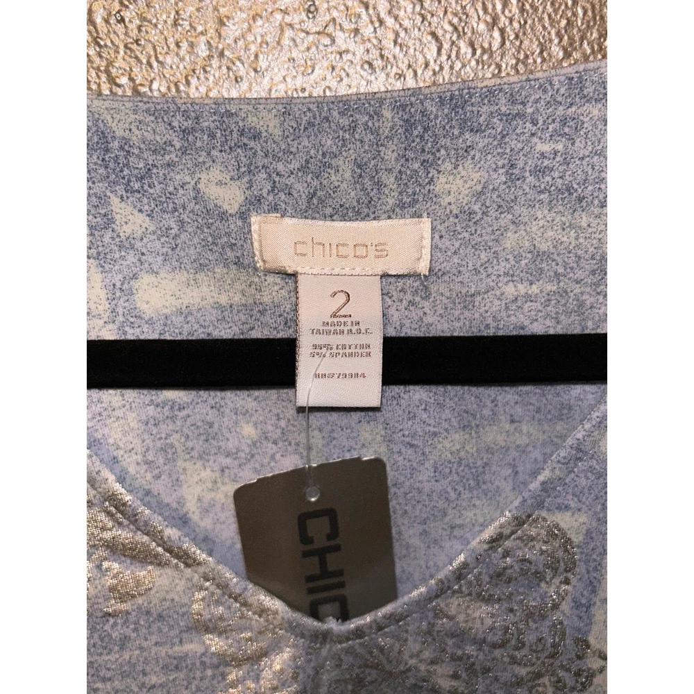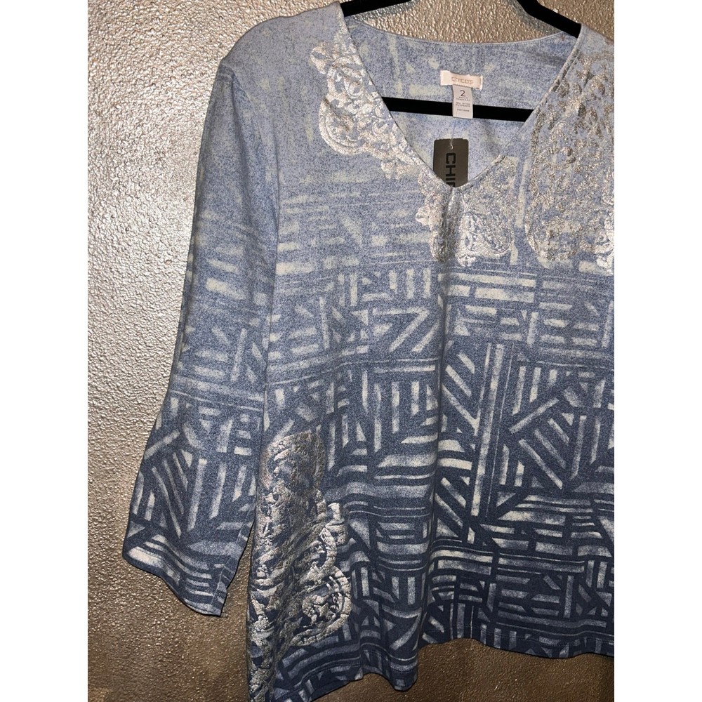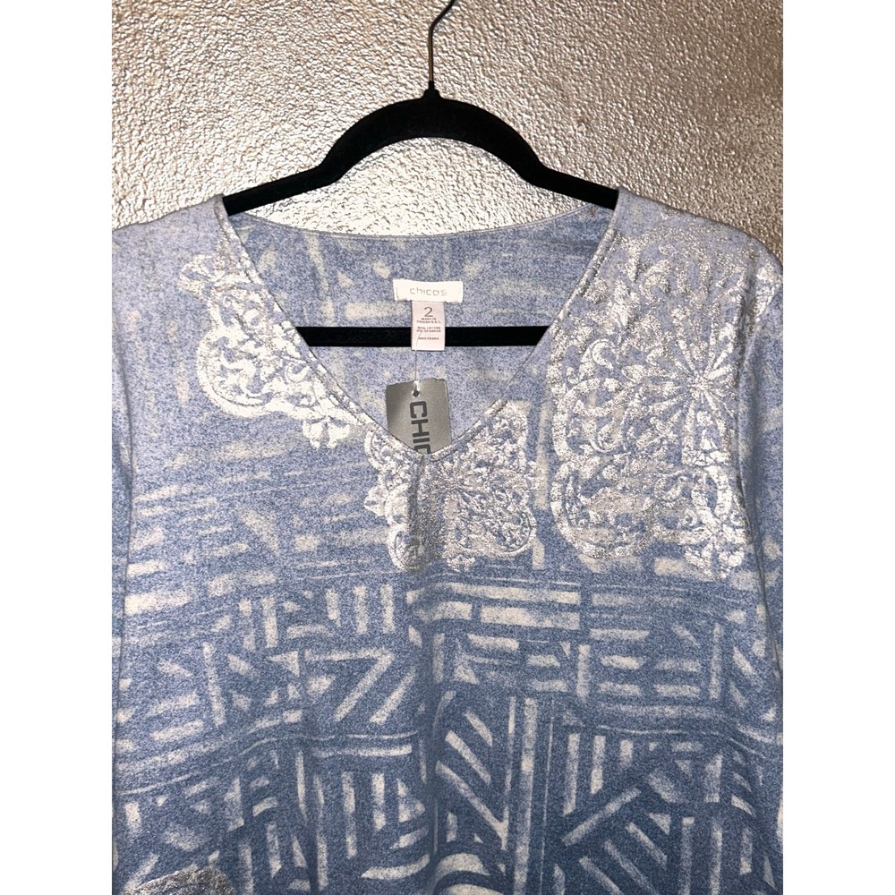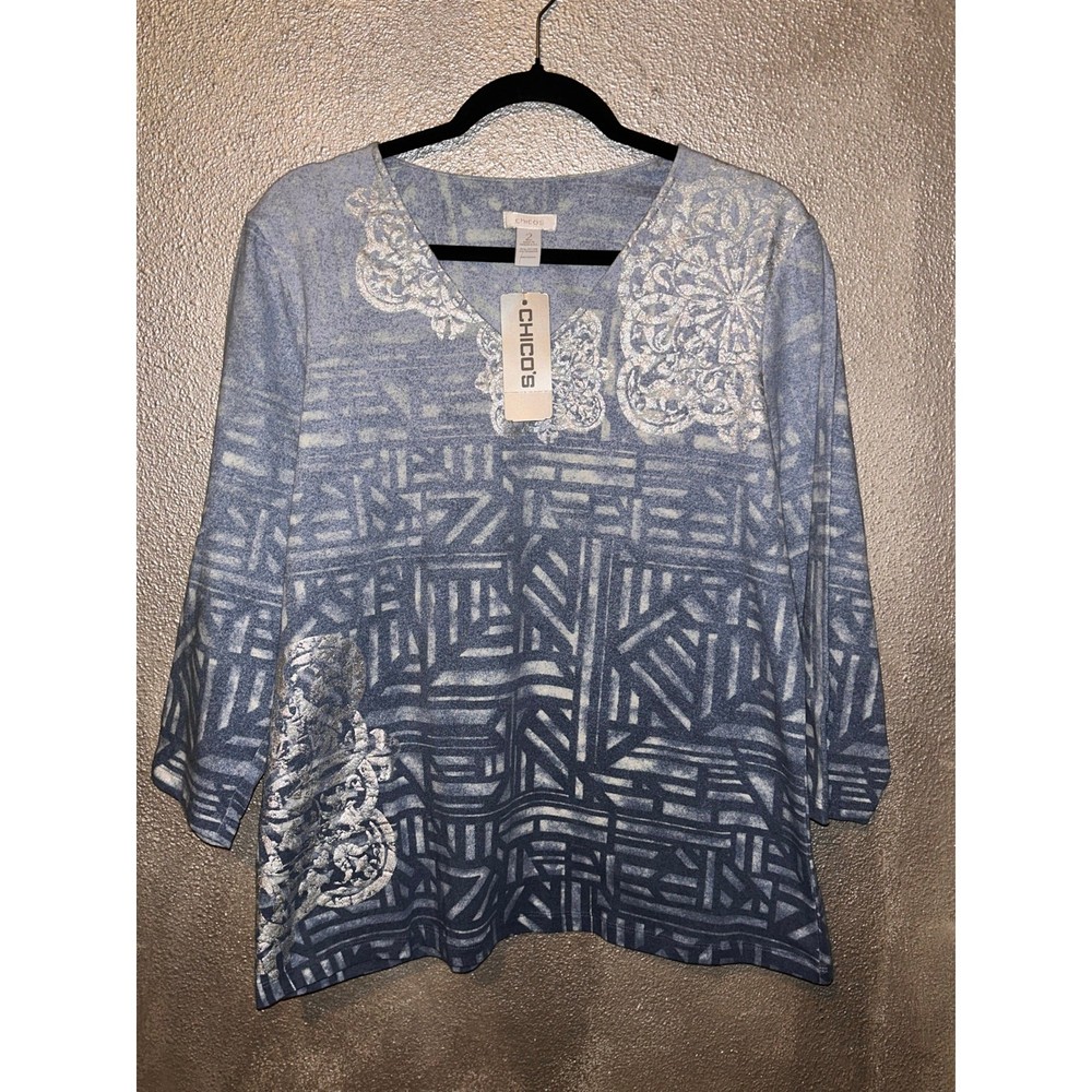 <![CDATA[<div>Chico’s Tranquil Dip-Dye Valentina Top – Size 2 (Large) – NWT This super cute Chico’s top brings effortless style and comfort together in one beautiful piece. Featuring a calming dip-dye design in smooth Valentina blue, it’s the perfect choice for casual days or relaxed evenings out. With 3/4 sleeves and a flattering silhouette, this top is brand new with tags and ready to wear. Details: • Brand: Chico’s • Style: Tranquil Dip-Dye Valentina Top • Color: Blue • Sleeve Length: 3/4 sleeves • Chico’s Size 2 (equivalent to Women’s Large) • Condition: New with tags Approximate Measurements: • Bust: 42” • Sleeve Length: 18” • Length: 25” A soft, stylish top with a unique finish—perfect
