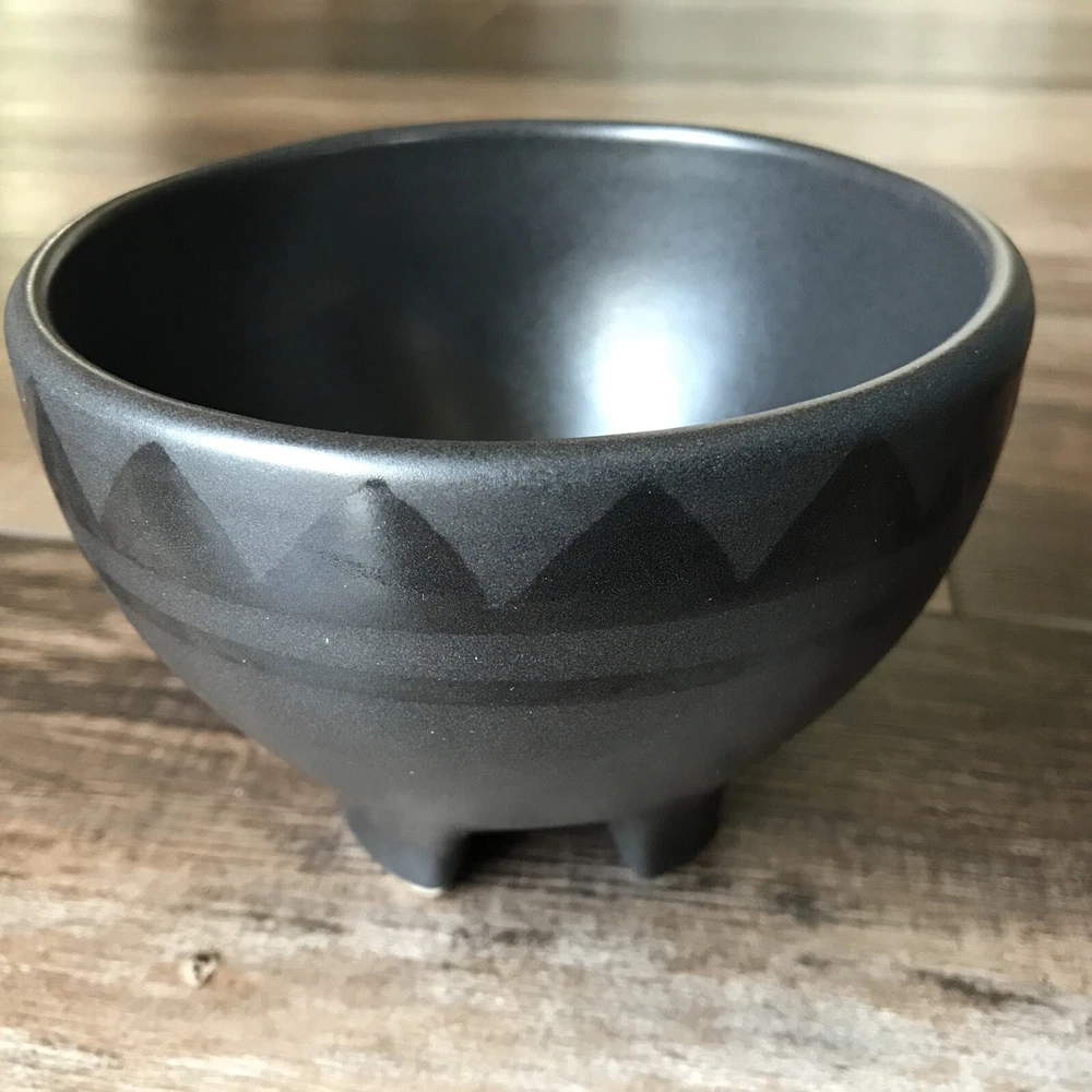 This stunning two-piece chip and dip bowl set will add a touch of Southwest charm to any occasion. The Midnight Sun Navajo pattern on the round, 13.25" ceramic chip bowl and 5" dip bowl make them perfect for serving up your favorite snacks and dips. The large bowl measures 3.6" in height and features an impressive decorative design, while the smaller dip bowl fits snugly within the larger bowl for easy storage. These original, mid-century modern bowls are produced in the United States and bear an impressed backstamp. The set includes both the chip and dip bowls and is ideal for all occasions. Don't miss out on the chance to own this beautiful Treasure Craft set that will impress all of your guests and elevate your entertaining game. I have other items listed. Shipping in the continental US only. No P.O. Boxes please. All items canceled after payment will be charged a 10% restocking fee.