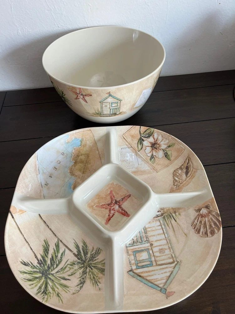 Set of 2 large tray and bowl In good condition The item pictured is the actual item you will receive. Please see the attached photos for condition details and approximate measurements. Most of the items I sell are pre-owned and will show normal signs of use. Please zoom in on photos for a close up look. Thank you for your support 💌