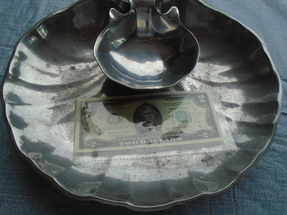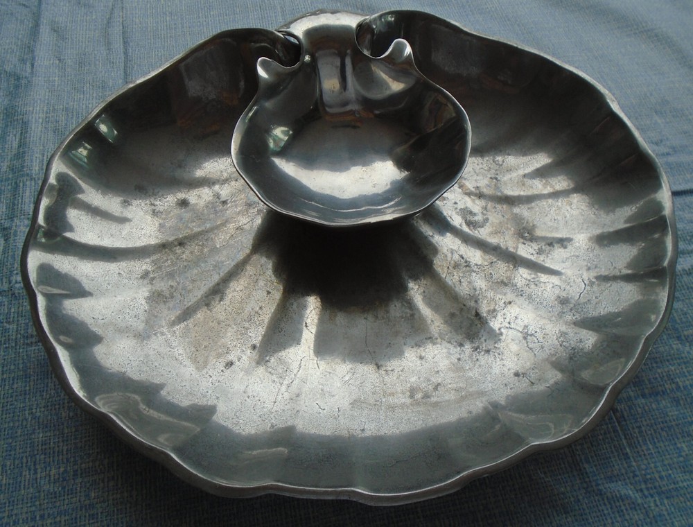 The following is up for auction without reserve Please note ALL SALES ARE FINAL . NO RETURNS a vintage Wilton Armetale 2 piece serving set is a must-have for any host or hostess. Crafted in the United States from a proprietary aluminum alloy blended metal, this 2-piece clam shell chip and dip platter is perfect for all occasions. The large size and two compartments make it easy to fill with your favorite snacks and dips, while the tray and bowl features make for a convenient serving option. The pattern of the platter is a beautiful shell design, adding a touch of elegance to your table setting. The gray color and pewter finish give it a timeless look, perfect for any theme or decor. In good pre-owned as purchased condition as pictured. Please note that this is a pre-owned item sold as is so may need a cleaning and polishing if desired. It shows some signs of minimal normal wear and minor scratches. Please use the zoom feature and examine all pictures carefully as what you see in the pictures is what you are buying. We plan to fully retire July 2023 so make a REASONABLE offer and we will probably except and we combine shipping and shipping is just postage based only on box size & weight. We combine Shipping and in most cases shipping is just whatever the postage is based ONLY upon box size weight and the ship from to zip. If shipping cost looks high, PLEASE contact us with your Zip Code for a shipping quote. We ship USPS, UPS, and FedEx, whichever is cheaper. Pictures are a very important part of the item description. Condition, any defects, inclusions, etc are also best shown in the pictures as we don’t write a detailed book on describing the items pluses and minuses. This item is being sold as is and as shown. Returns will be accepted if the item is grossly misrepresented or proof of shipping damages. Buyer’s Discretionary (without cause or reason) Returns are subject to buyer payment for both shipments. Item ships only to Continental U.S. addresses. Tracking information will be added to shipping upon shipment. With 1000’s of items listed have fun shopping and BUY BUY BUY. The vast majority of the items we sell are old vintage and pre owned. We do not know their past history or what they have been exposed to or where they have been. Our house is a smoke free and pet free house but we don’t know the history of the items we purchased. Please note ALL SALES ARE FINAL . NO RETURNS · If you don’t like our price and shipping · MAKE A REASONABLE OFFER FOR THE ITEM ONLY and give us your shipping ZIP and see what we can do. · Best offers or combined shipments are shipped by total weight of all items via cheapest way USPS, Fed Ex, etc.with insurance unless Buyer specifies and pays for their preferred way. · We start the auctions with a fair price and set a fair shipping cost. We also ship after payment clears and it is packed well to insure a safe delivery... · Returns only accepted if there was a gross material error in description. No returns if you just changed your mind don't like it or don’t know how to use it, or think you overbid. We do not pay for nor reimburse for postage and handling fees. IF YOU qualify for a return, you must notify us right after item's arrival and item must be returned within 14 days of its arrival in the same condition as shipped. · All descriptions are to the best of our knowledge and research and are purely our opinion. We do not test items for working ability unless stated in the auction. Any stipulation as to age or authenticity is purely speculative and judgmental... · You bought it; It’s YOURS, ENJOY IT. · If damaged in shipment (IT HAPPENS) full or partial refund is given after buyer submits summary proof of damage, jpg pictures, etc., such that seller can file an insurance claim. Refund is only made AFTER seller receives insurance claim acceptance. Failure of buyer to cooperate in insurance claim means NO REFUND. · Vintage and Antiques are not NEW and PRISTINE. Unless the item is listed as new, mint or in near mint condition all items for sale are used, vintage, or just plain really old, and will show some form of wear, scratches, dents, rust, some silver loss, or imperfections which makes them unique. DON’T EXPECT IT TO BE NEW. · Don’t waste your time and resources and ours Returned items requesting signature will not be signed for but will be rejected and items mailed with insufficient postage on the box will be rejected upon arrival. · Buyer is responsible for all shipping, insurance, and tracking costs. Good Luck Bidding & Thanks for looking. See tomsallthingssilver for unique items ! SSR usps box A 1 8-10-2023