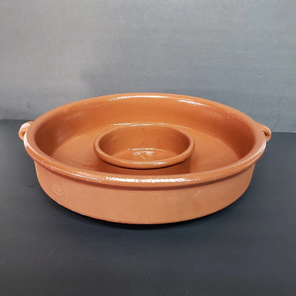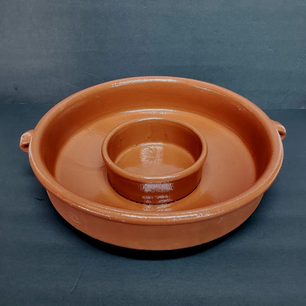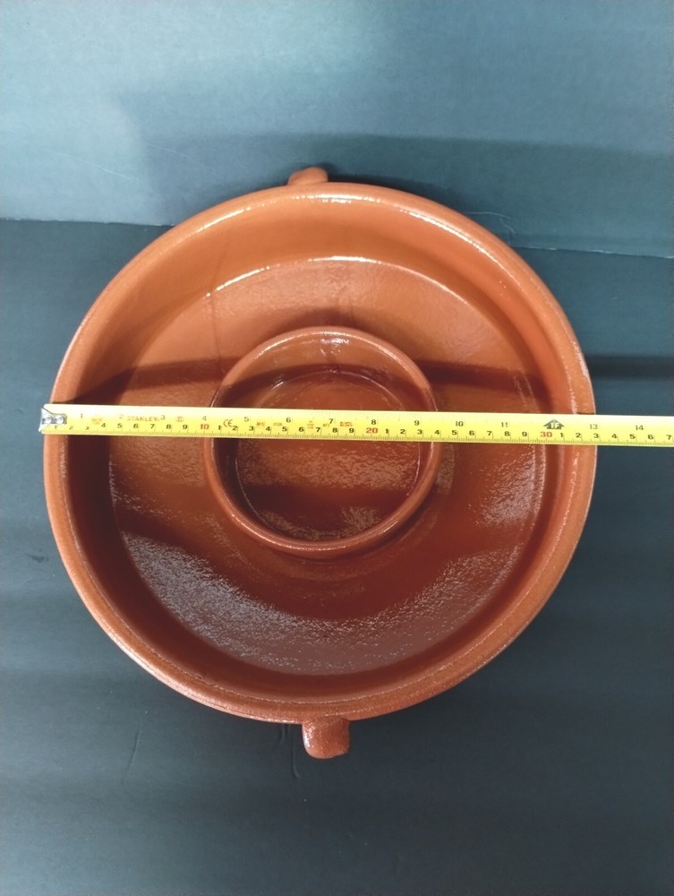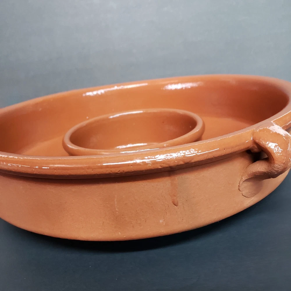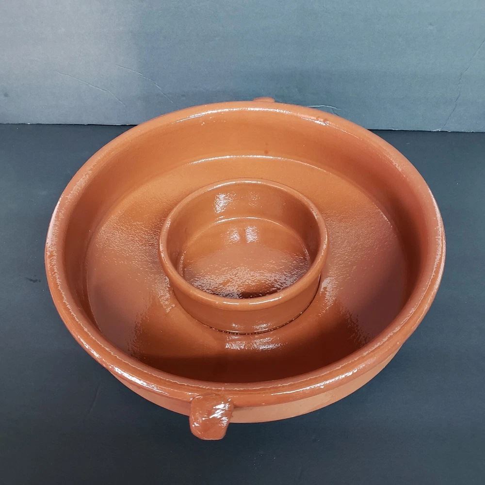 IDG Terri-cotta Stoneware Dip Glaze Handmade Chip And Dip Server Large Size. This is a used item. No glazing on the outside it was made that way. You can also see the runs in the glazing on the inside. Very heavy approximately 7 lb 1 oz Please see all photos for closer details any questions please message me. Thank you.