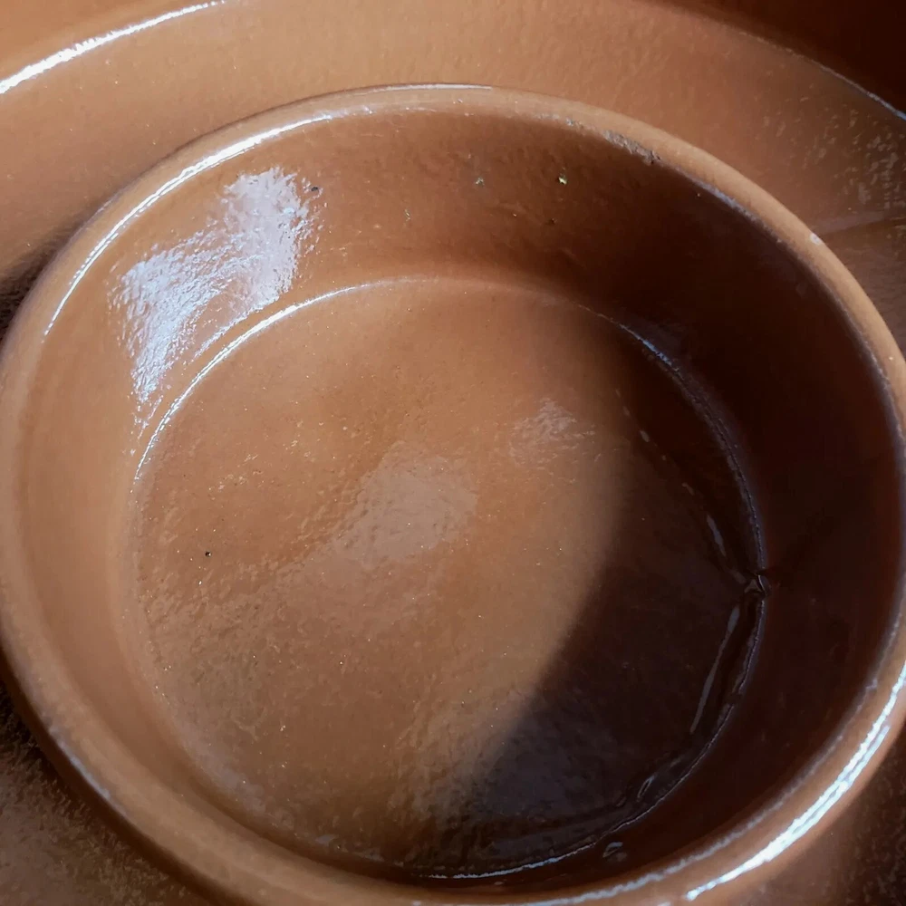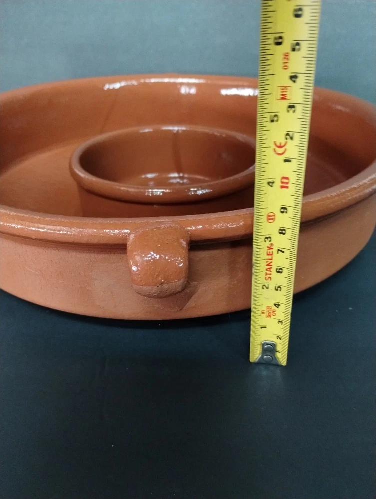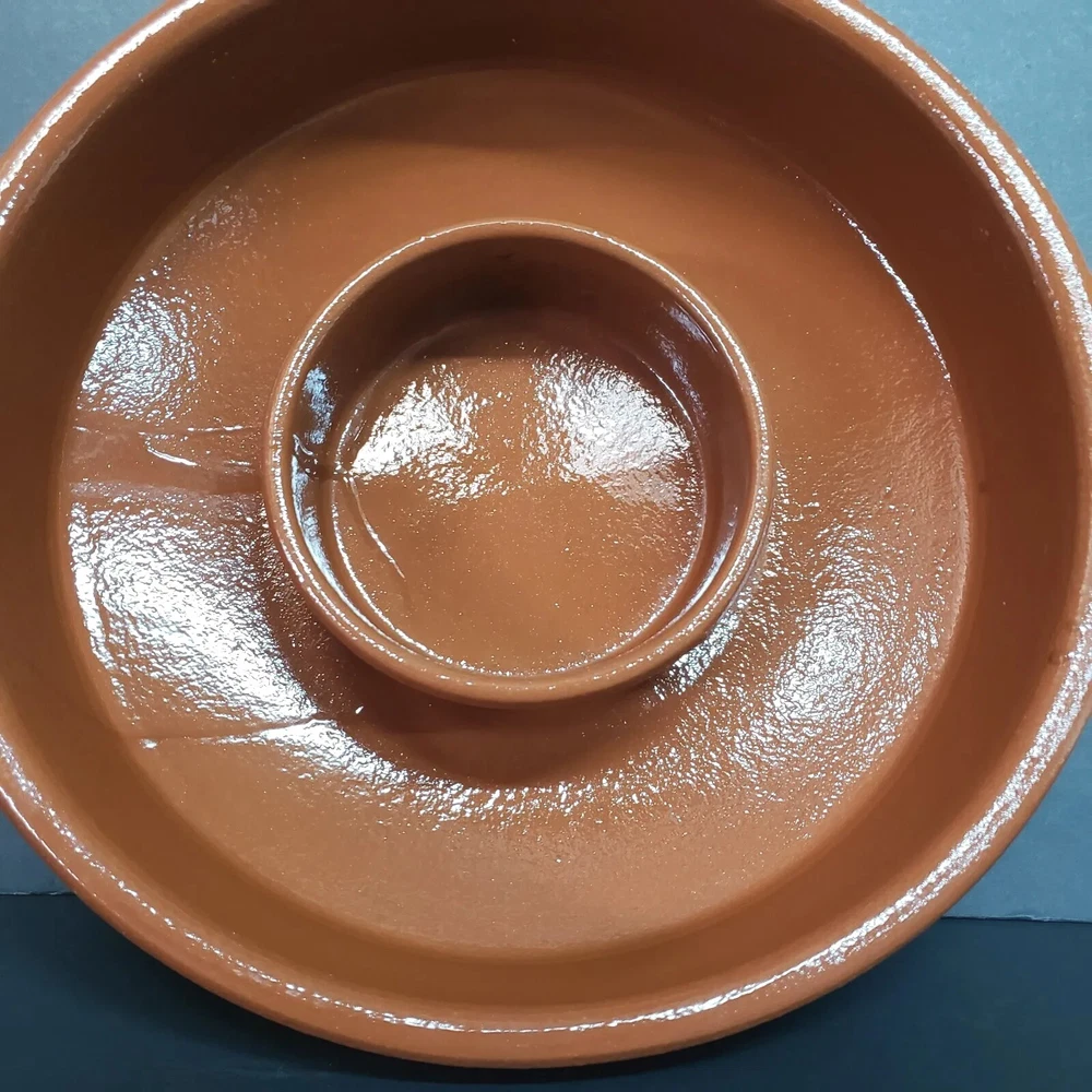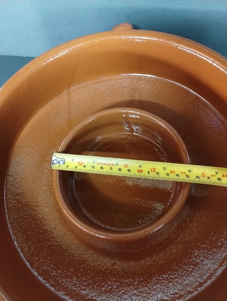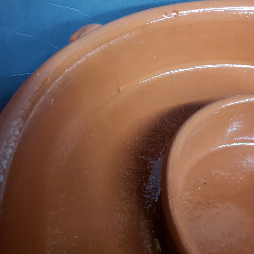 IDG Terri-cotta Stoneware Dip Glaze Handmade Chip And Dip Server Large Size. This is a used item. No glazing on the outside it was made that way. You can also see the runs in the glazing on the inside. Very heavy approximately 7 lb 1 oz Please see all photos for closer details any questions please message me. Thank you.