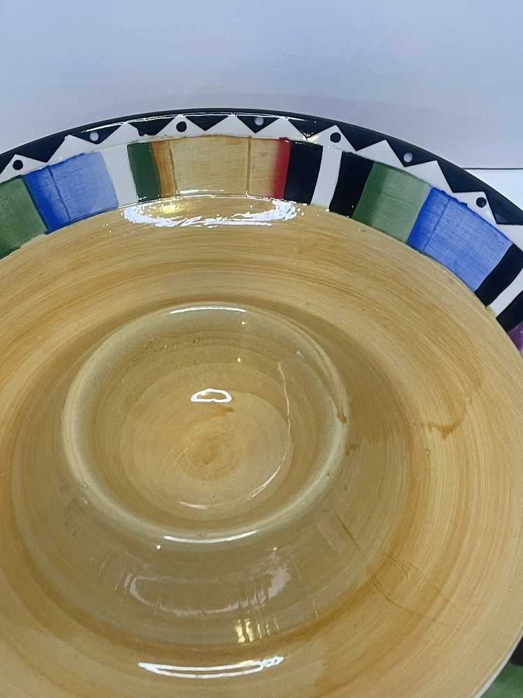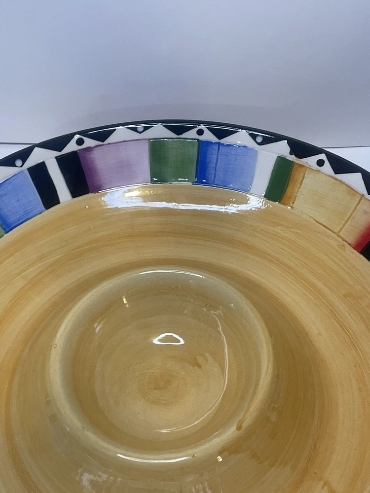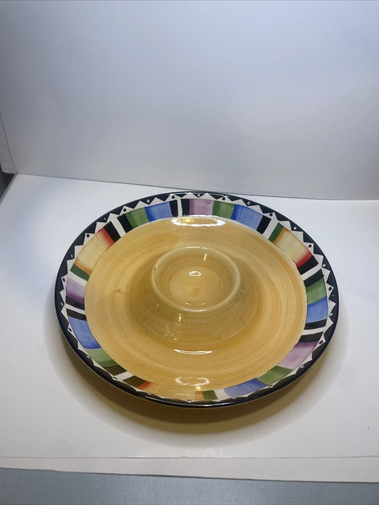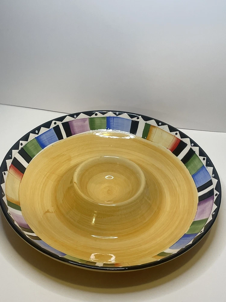 This Chip and Dip Plate is the perfect addition to your dinnerware collection. With a colorful and stylish pattern, this large round plate has a glossy finish and is made of high-quality Ceramic material. Measuring 13 inches in length and width, it is perfect for all occasions and is sure to impress your guests. Whether you're serving chips, dip, or any other delicious appetizer, this plate is the perfect choice. Add it to your cart now and enjoy its beauty at your next dinner party. If you have any questions or need more photos please let us know. Thank you