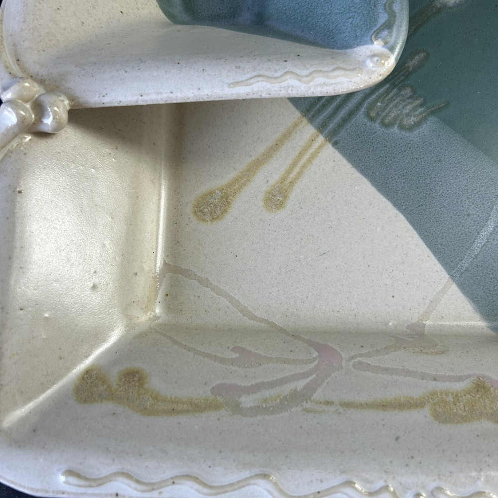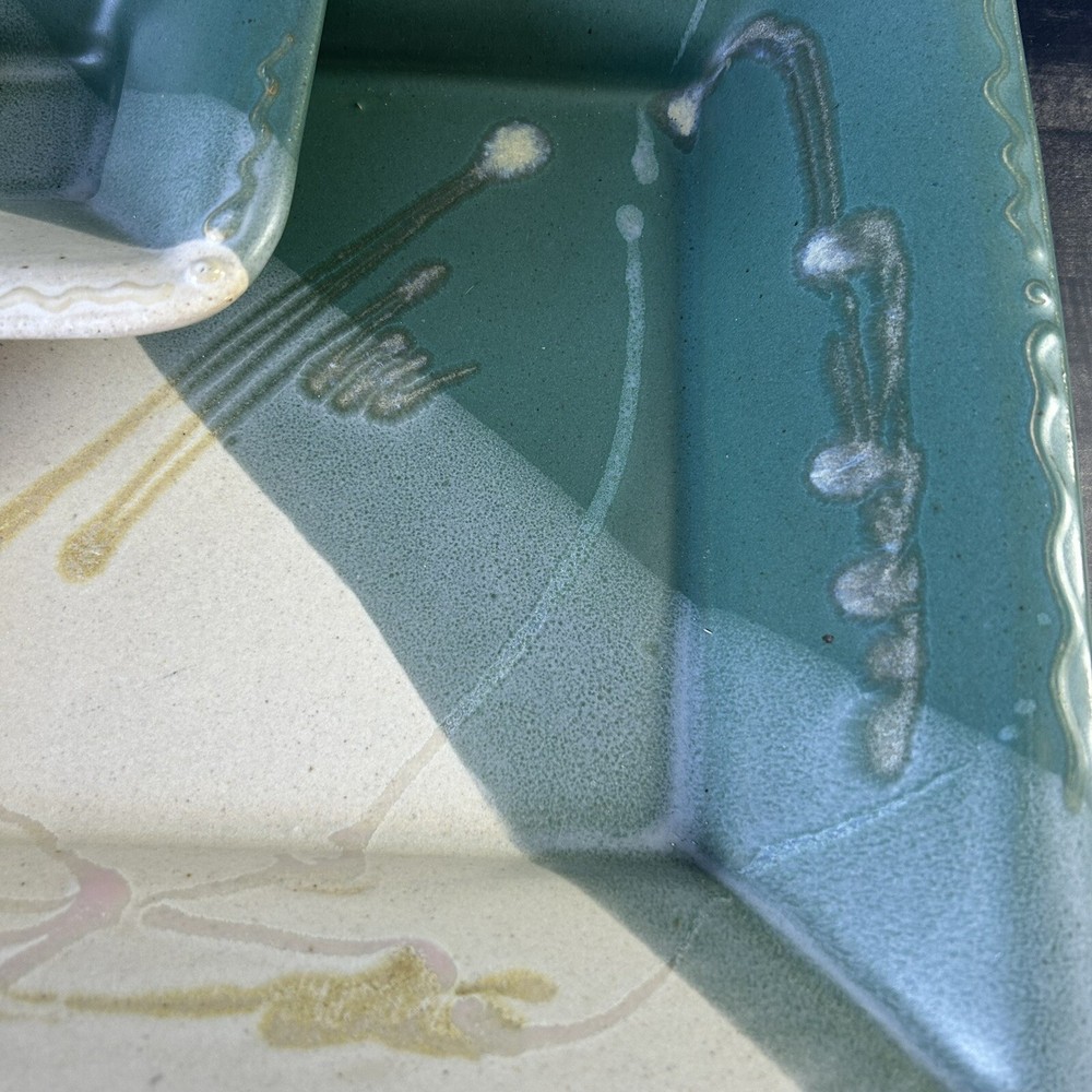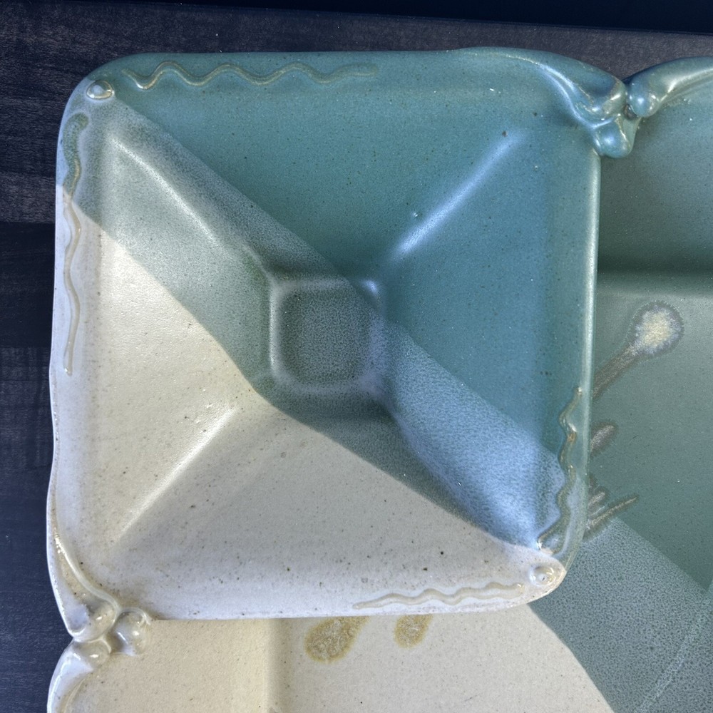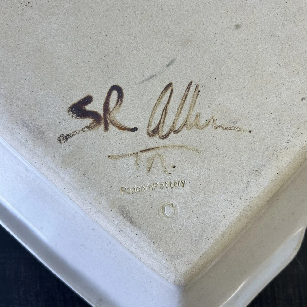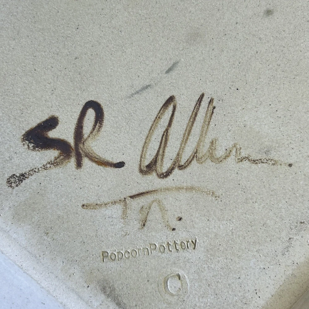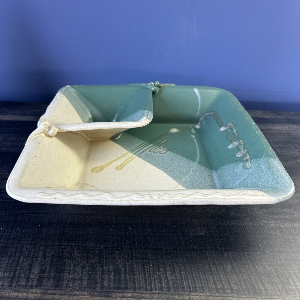 Love this unique stoneware chips & dip bowl—perfect for parties or snacks at home! Theged and in great pre-owned condition with no cracks or chips scaratches. The Popcorn Studio pottery adds a charming handmade touch, and it's so functional. A fantastic find for any pottery lover!