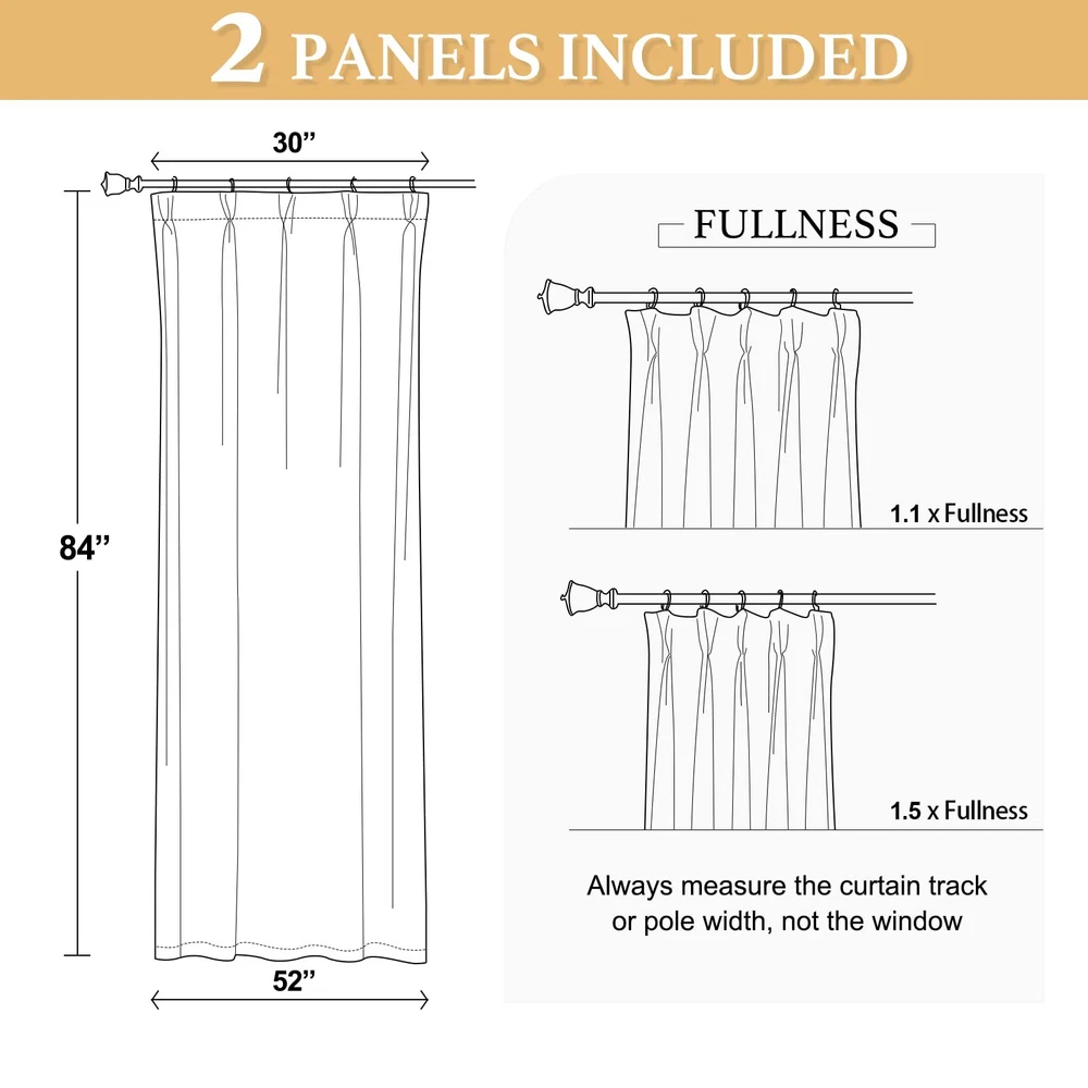 Blackout Curtains Elegant Design: 2 panels per package. Each blackout curtain measures 30" wide. The design of back tab (1.9-inch diameter) creates casual elegance for your house. And pinch pleats are more gathered than other headings and have permanent sewn-in pleats for a more luxurious. Nice Material: Super heavy and soft material. 85%-99% light blocking, thermal insulated, energy-efficient. Protect your furniture and floor exposed to the sun, while still helping you balance temperature on heating and cooling your home. Privacy protection. Decorative & Elegant: Touches of elegance take your decor to a whole new level. Perfect for bedroom, living room, farmhouse,home office, adult or 's room,versatile style for any room in your home. Wide Compatibility: Don't bother looking for sheer curtains to match, choosing different styles of voile curtains with white color in the . Such curtain sets provide a more permanent harmonious window dressing, making your home lively. Easy Care: Good quality finishing will withstand years of use. Machine washable and Wash the water temperature below 86℉. Mild detergent no bleaching. Low-temperature ironing. Don’t use sharp things scratching curtains.