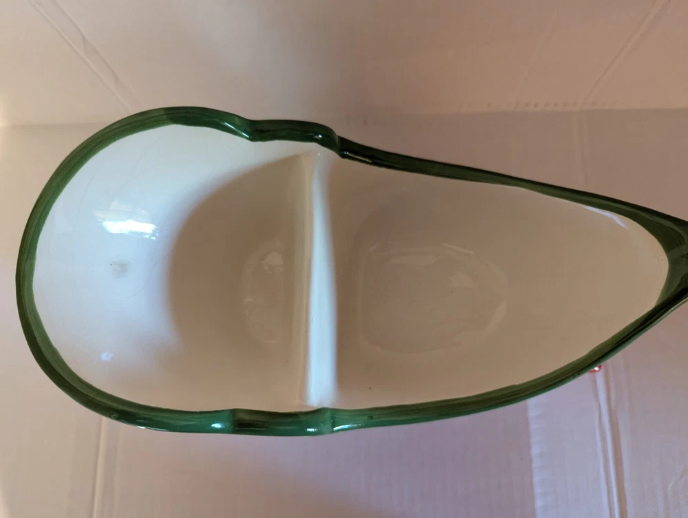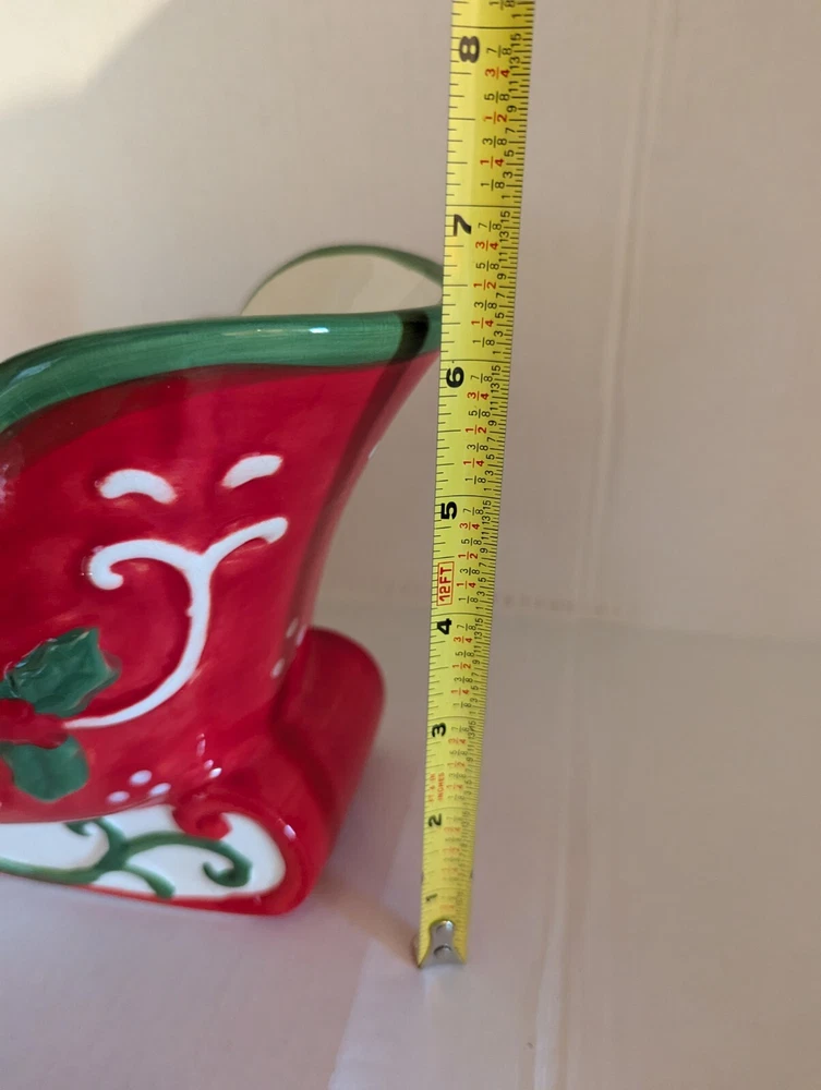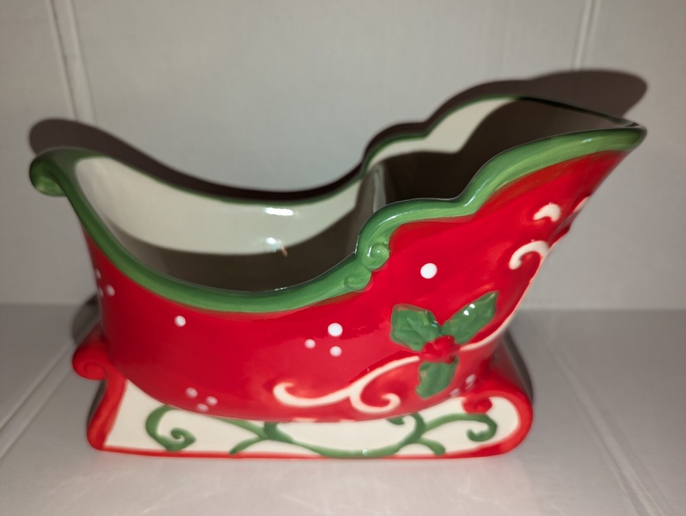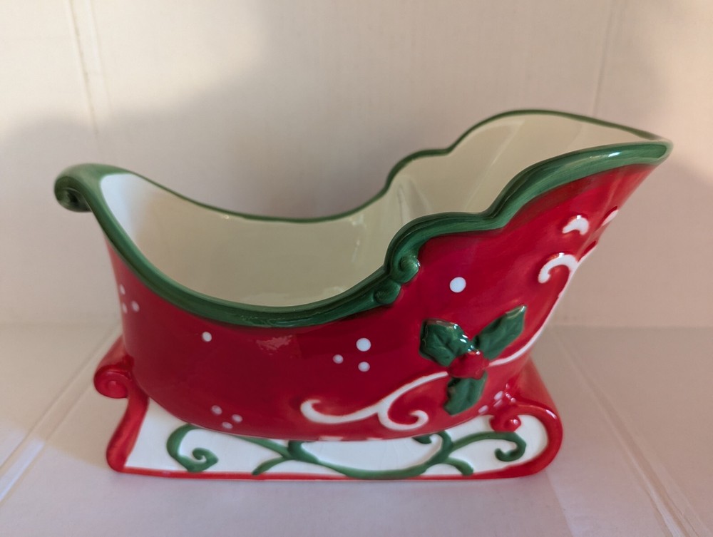 **Please Read*" Inside of the sled there are defects or imperfection(see photos) Bid with confidence Check out our other listings This beautiful ceramic chip and dip plate is the perfect addition to your Christmas collectibles. With its festive green and red painted design, it's sure to bring a smile to your face every time you use it. Made from high-quality ceramic, this plate is durable and long-lasting, ensuring that you can enjoy it for many holiday seasons to come. Use it to serve your favorite snacks or as a decorative piece in your home. The sleigh design is perfect for Christmas and makes it a great gift for any occasion. Add this unique piece to your collection today!