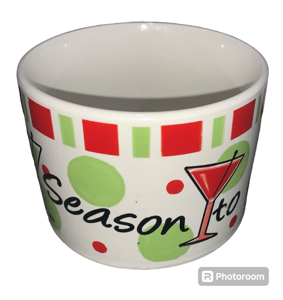 Christmas Stoneware Large Dip Chiller, "tis the season to be jolly" base measures 4.5" X 3.75" tall, dish measures 5.75" X 1.5" deep. Great Holiday Dinnerware Excellent pre owned condition...