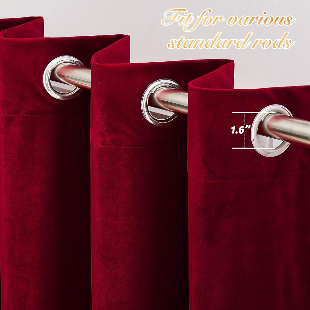 Velvet Ready Made: Package includes a pair of panels of W52"x L108"(132cm x274cm) each | W104"x L108"(264cm x 274cm) in total. The design of silver grommet (1.6 inch inner diameter) creates casual elegance for your house, which makes the curtains easy to install and slide. Length Adjustable: Don't worry if these velvet curtains are few shorter than your windows. You can hang these curtain panels with rings and hooks. That could be adjustable for height max 3 inches. Hooks space distance around 4-6 inches. Light Dimming: The curtains with dense fabric are capable of blocking 65% to 90% of natural light, effectively shielding the room from harmful UV rays. The darker color has better blackout effect. For 100% blackout shading, add the NICETOWN curtain liners(ASIN: B01KX4LVRC). More Advantages: Velvet curtains offer noise reduction, thermal insulated, and privacy protection. The dense fabric help to reduce external noise and regulate indoor temperature, creating a peaceful and cosy environment. They provide maximum privacy, protecting your personal space. Easy Care: Good quality finishing will withstand years of use. Machine washable and Wash the water temperature below 90℉. Mild detergent no bleaching. Quick ironing when needed. Please be free to contact us if you have any question with our products. Product Description