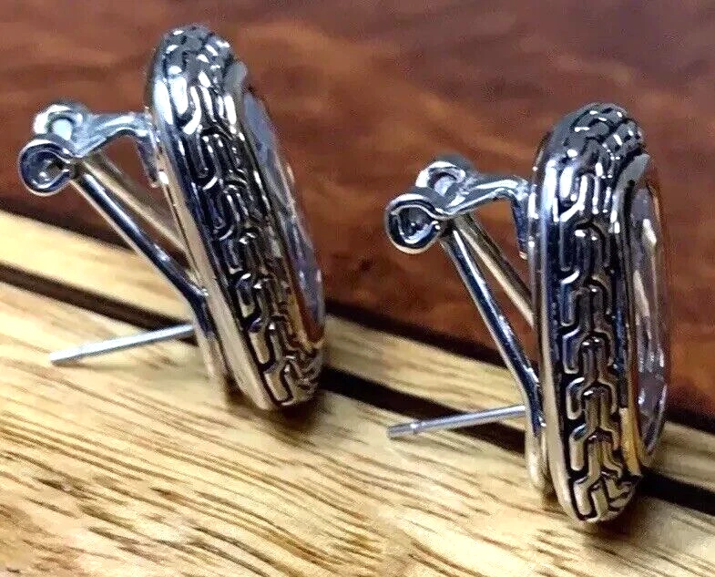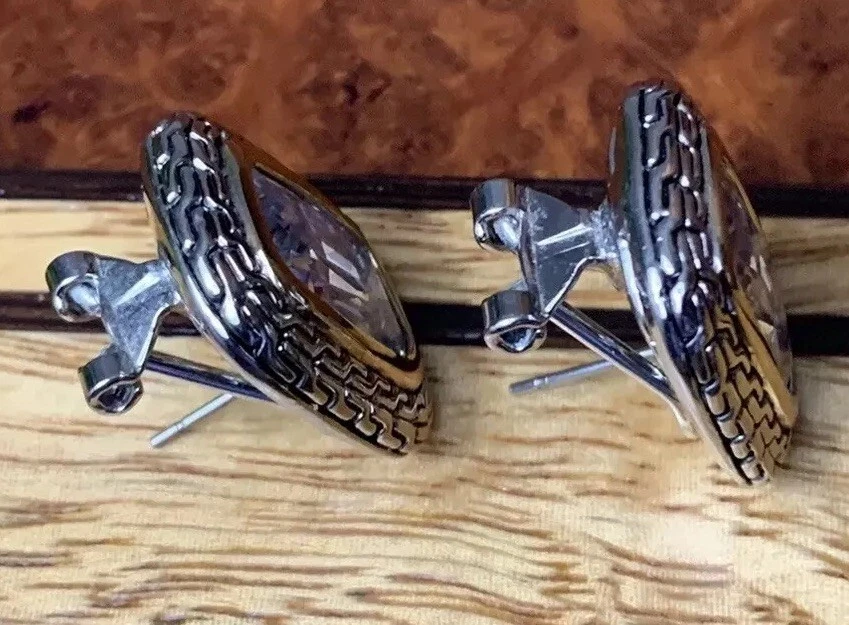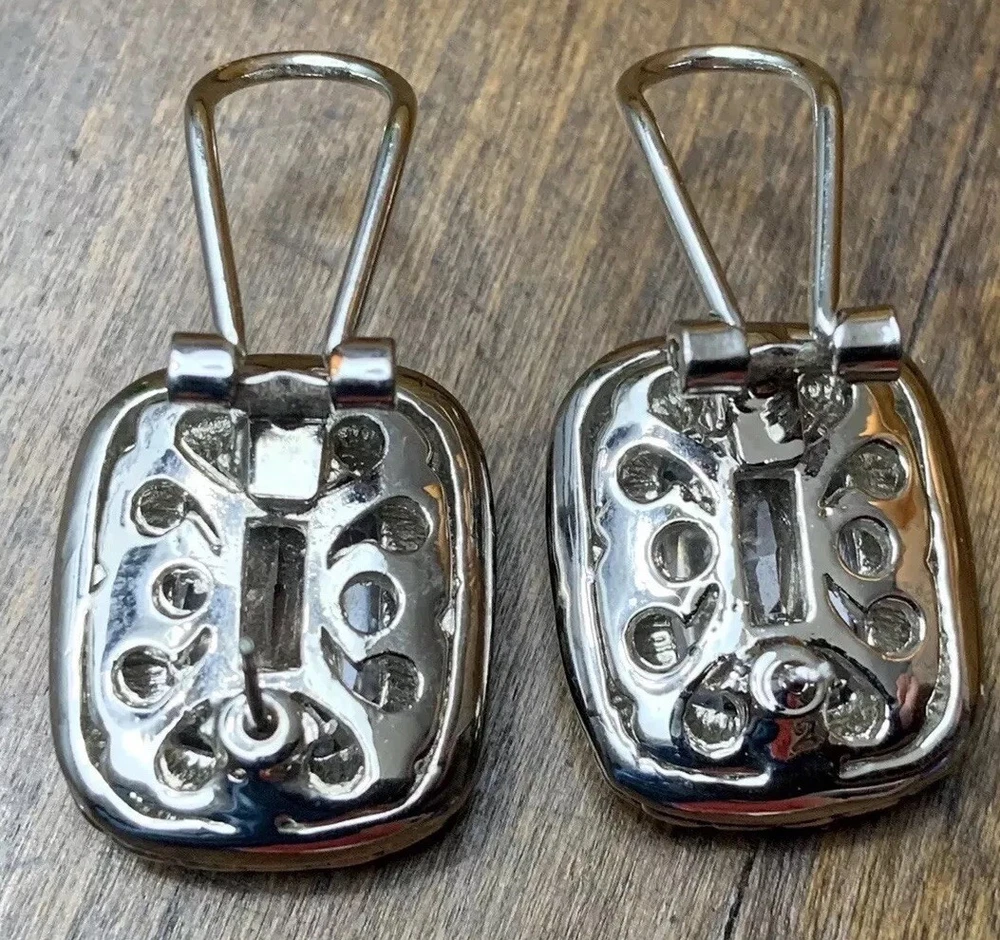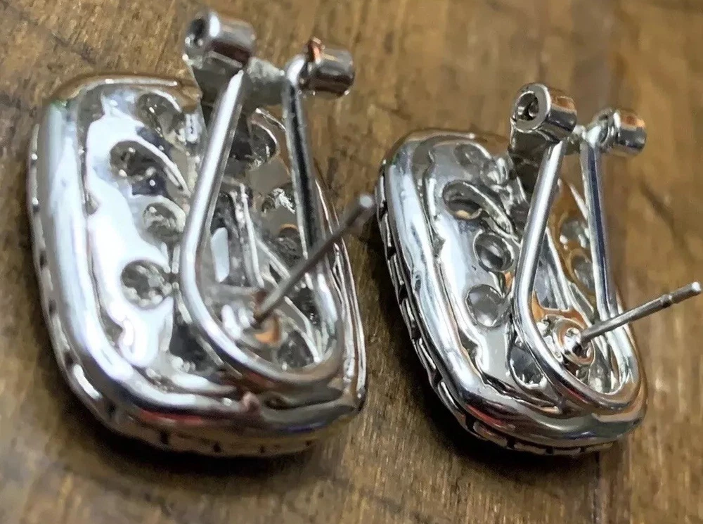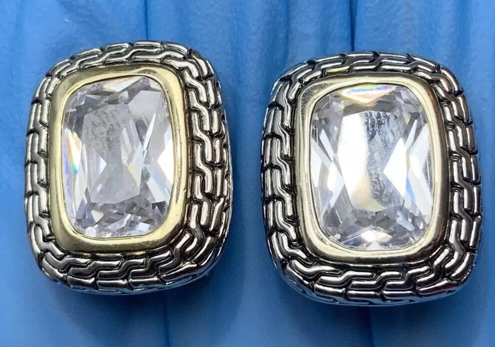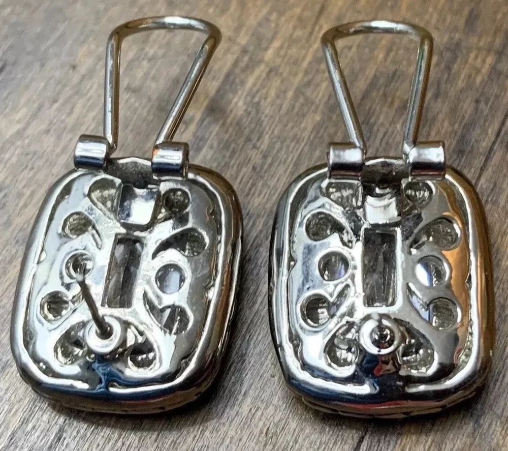~Chunky Braided Silver Tone & Gold Tone CZ Stone Rounded Square Clip On Earrings 5/8" ~Measure 5/8”x 0.875” ~Unsigned/unsure of the maker, they are beautiful earrings!...