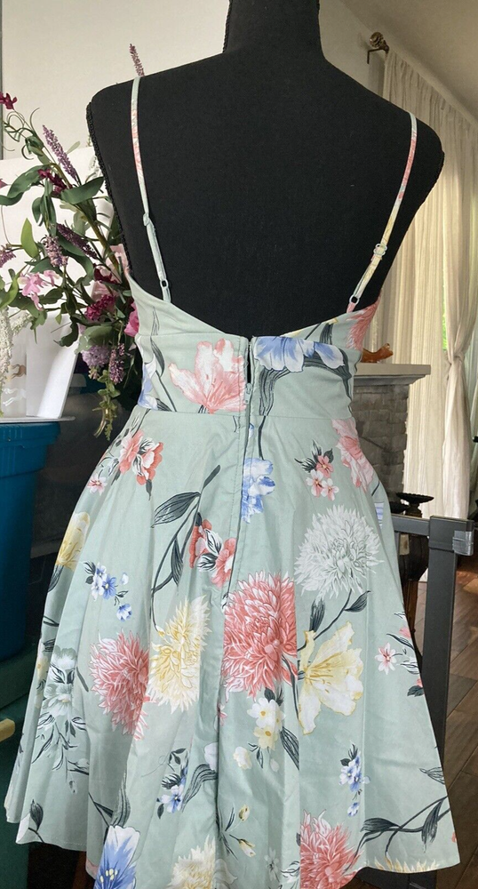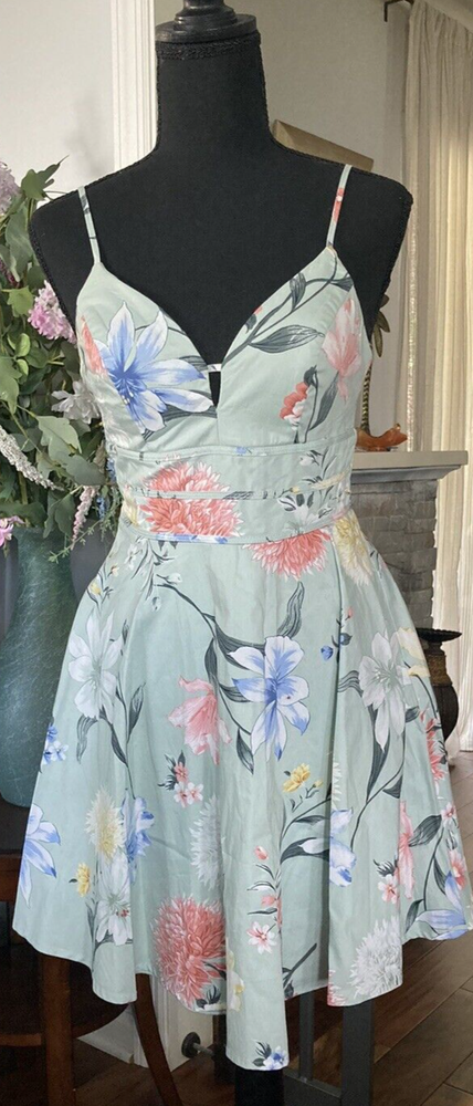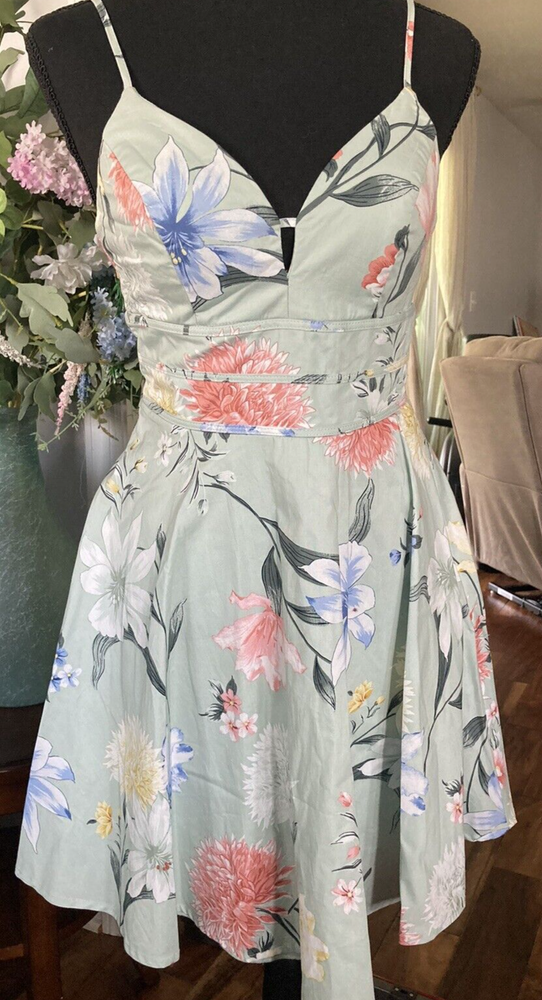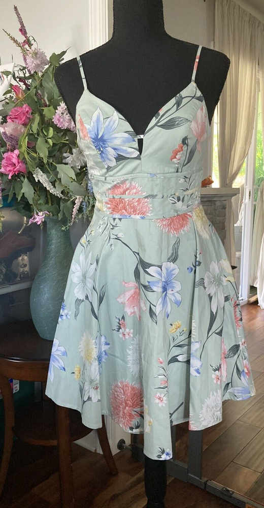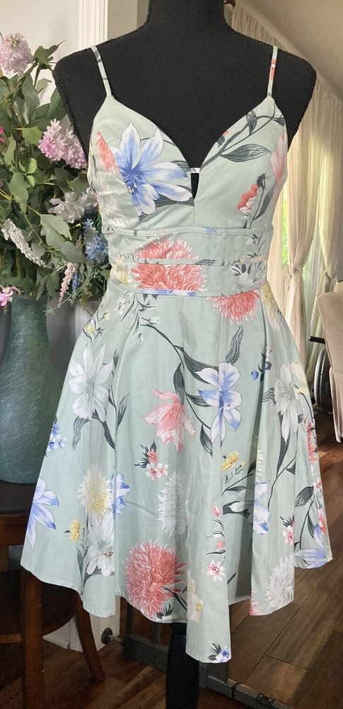 This beautiful Citi Studio Preppy Coquet dress is perfect for any formal occasion. The dress features a floral pattern and a sweetheart neckline with spaghetti straps. It is made of light green polyester material and has a zip closure for easy wear. The dress is a size 5 and is machine washable for convenient cleaning. The canvas fabric type gives it a preppy touch, and the accents of straps add a unique touch. This mini dress is perfect for summer and spring seasons and is ideal for weddings, parties, and cocktail events.