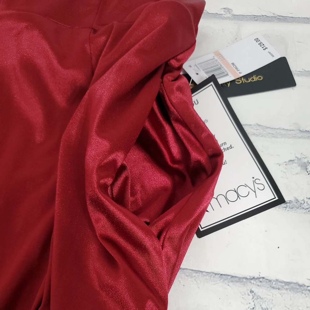 Luxe it up for your next formal affair in this glam look by City Studios, a curve-loving gown designed entirely from satin. Lined Side pockets Sweetheart neckline; Gown silhouette Floor-length formal dress Imported Back zipper closure Size & Fit Approx. 62" long from center back neck to hem. Materials & Care Polyester/spandex; lining: polyester Dry clean