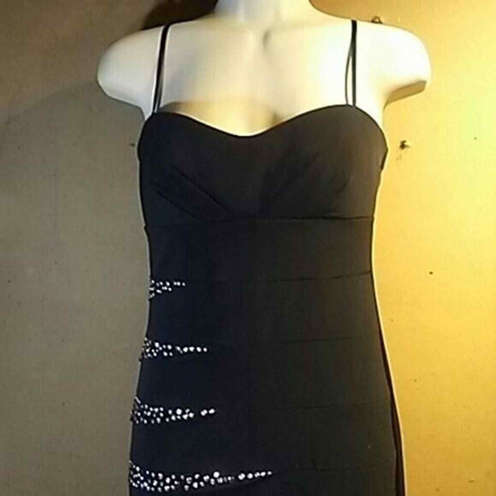 <![CDATA[<div>15 inches armpit to armpit 33 inches long Make a fashion statement with this stunning black bodycon dress from City Studio. The sweetheart neckline and strappy sleeves are perfect for a party or cocktail occasion, while the studded accents add a touch of glam. The dress is made from a polyester blend satin fabric that has a stretch feature for a comfortable fit. It's a size medium and has a short dress length, making it perfect for the summer season. This dress is a must-have addition to any woman's wardrobe. 15 inches armpit to armpit 33 inches long
