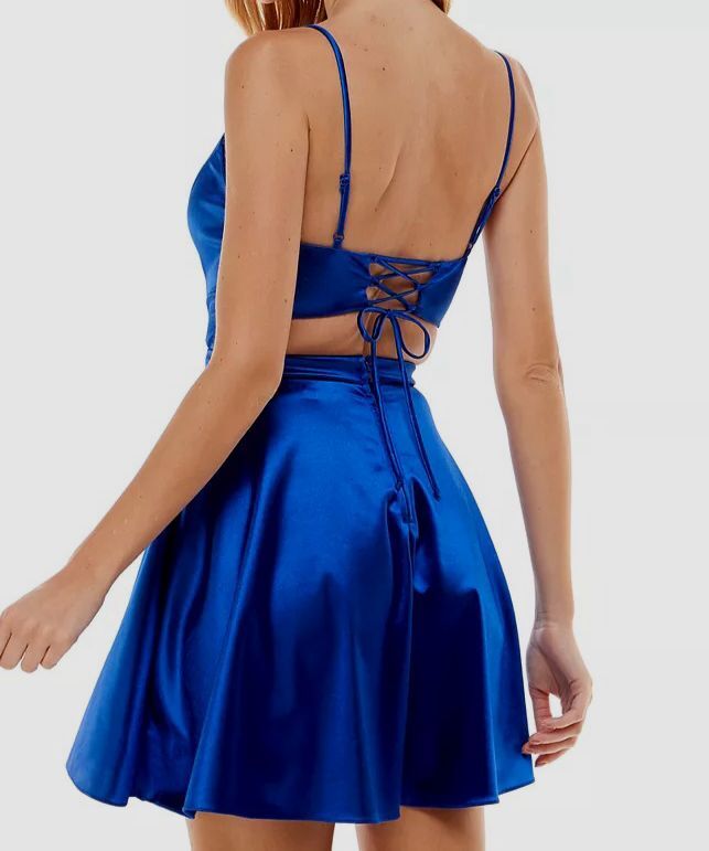 City Studio Junior Women's Blue Satin Fit & Flare Dress Size 13 Description Imported Fitted through the chest and waist; flared and flowing skirt Lace-up back bodice and back zipper closure Bust padding Lined Runs true to size; order your normal size Plunge sweetheart neckline; Fit & flare silhouette Dry clean Polyester/spandex; lining: polyester About Us We sell only 100% authentic clothing from new with tags to gently used. We have a 100% authentic or money back guarantee on every item we sell. Items are listed daily so make sure to put us on your favorite! We have been in business for over 10 years selling tens of thousands of designer items. We strive to meet your designer needs at a quality price! Payment Shipping Returns Payment accepted via paypal, credit/debit card. Shipping is usually within 24 hours of purchase (M-F). Super fast service. Tracked delivery. 100% satisfaction guaranteed. Please review our eBay return policy for more details.