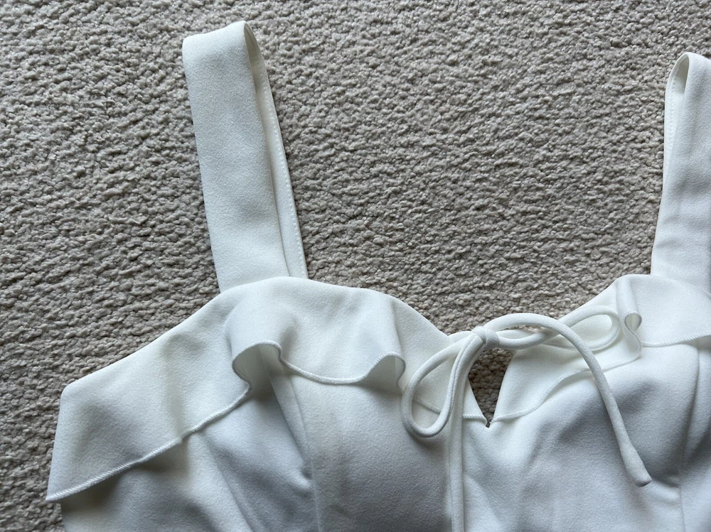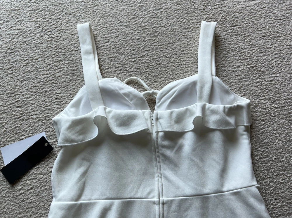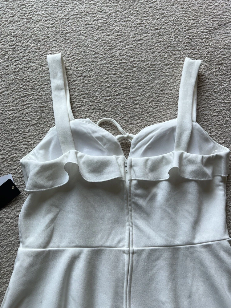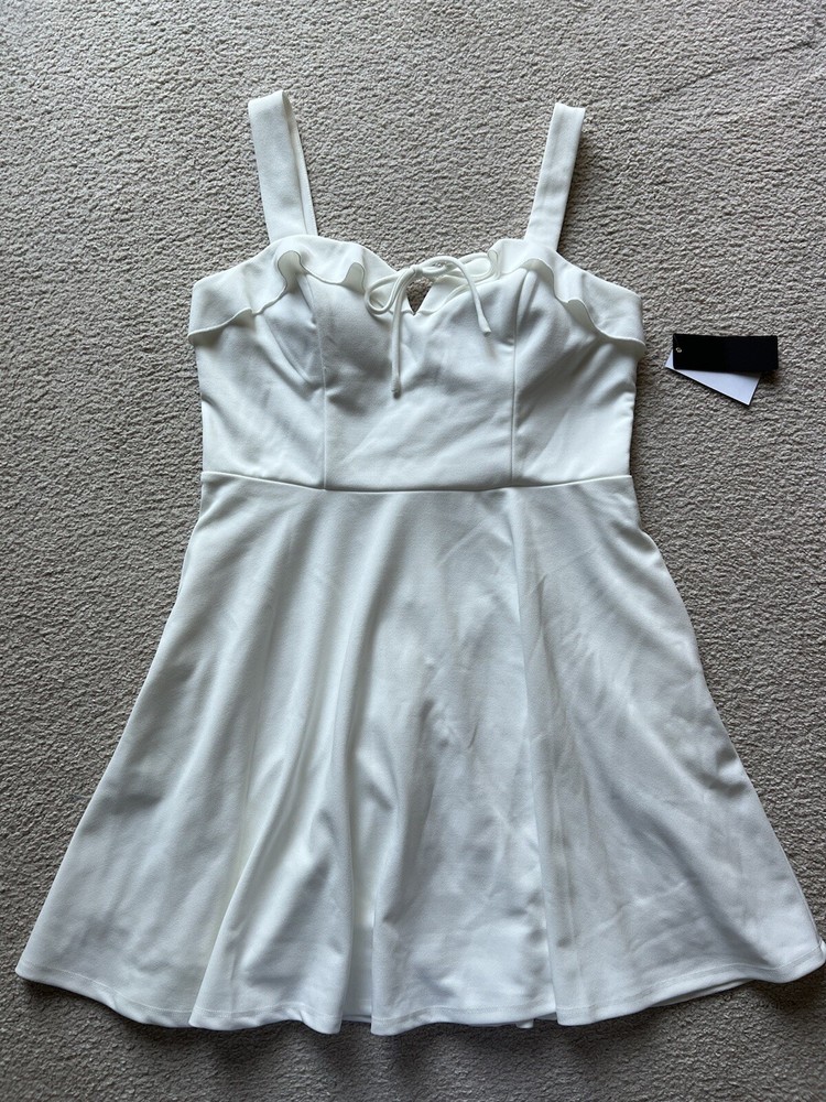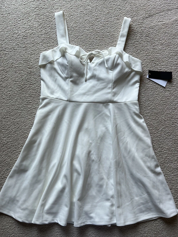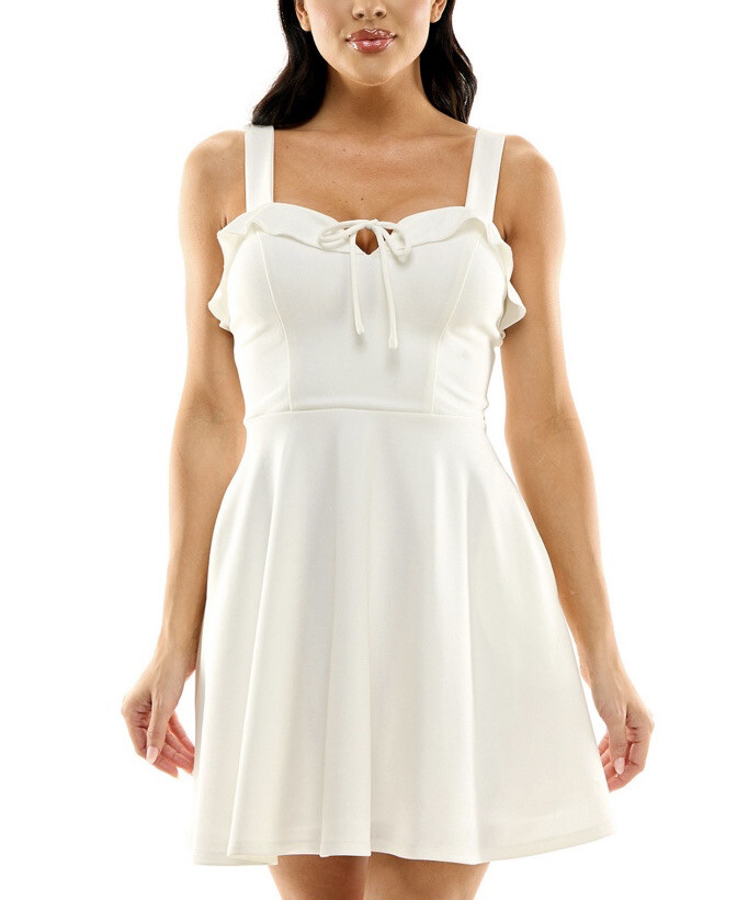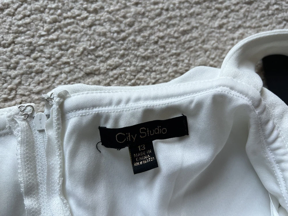 City Studio Juniors Ruffled Fit & Flare Dress Ivory Sleeveless Size 13 New NWT.