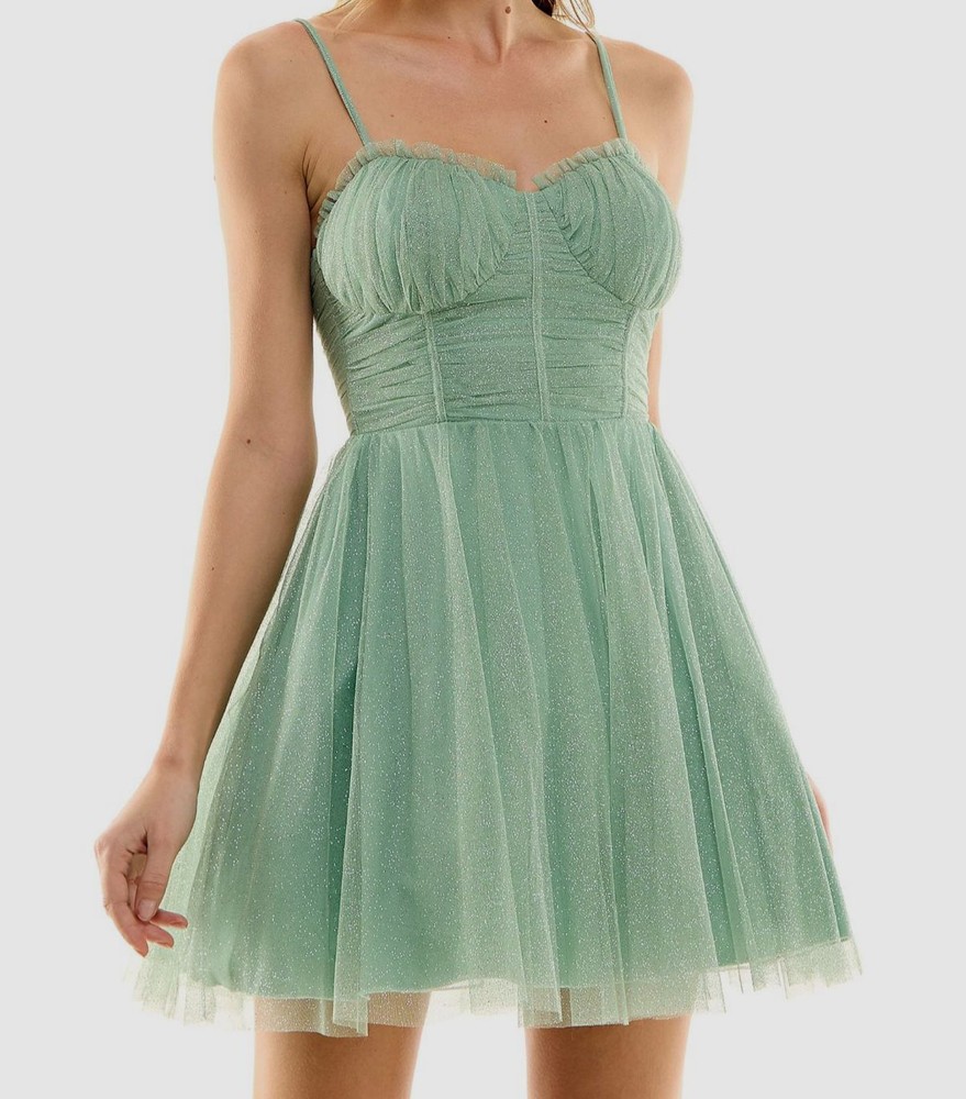 City Studio Juniors' Women's Green Glitter Ruched Sweetheart Dress Size 15-16 Description Glitter tulle fabric Sweetheart neck Sleeveless Pintuck trim Adjustable spaghetti straps Ruched bodice Back zipper closure Skater silhouette Above knee length Polyester Dry clean Imported About Us We sell only 100% authentic clothing from new with tags to gently used. We have a 100% authentic or money back guarantee on every item we sell. Items are listed daily so make sure to put us on your favorite! We have been in business for over 10 years selling tens of thousands of designer items. We strive to meet your designer needs at a quality price! Payment Shipping Returns Payment accepted via paypal, credit/debit card. Shipping is usually within 24 hours of purchase (M-F). Super fast service. Tracked delivery. 100% satisfaction guaranteed. Please review our eBay return policy for more details.