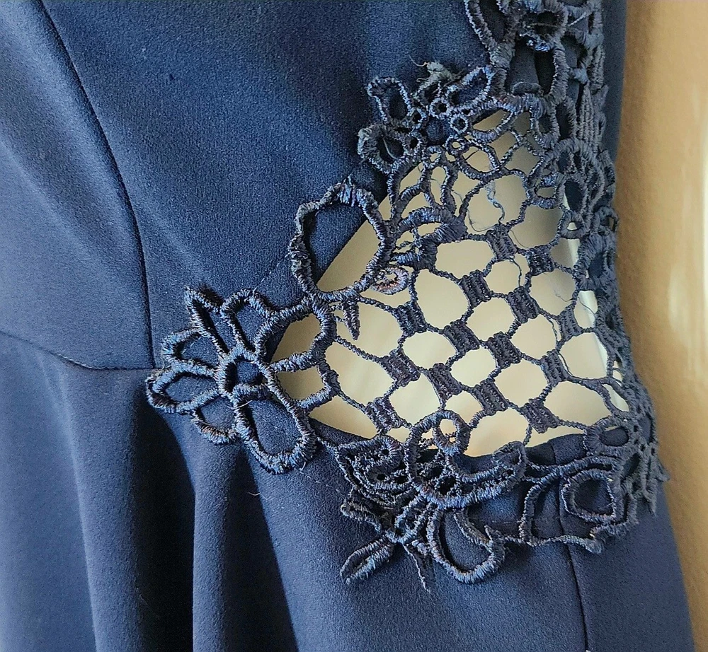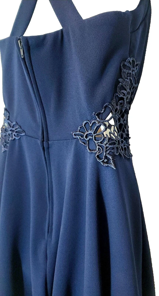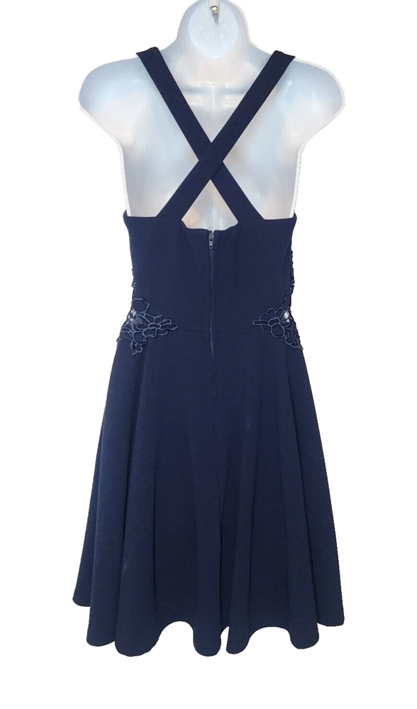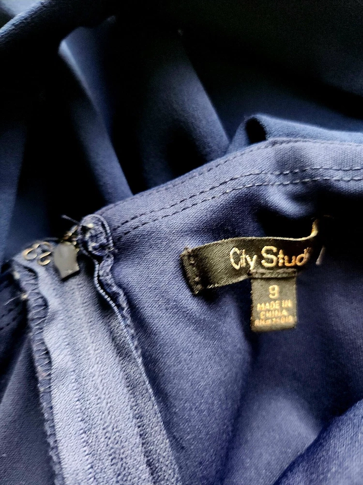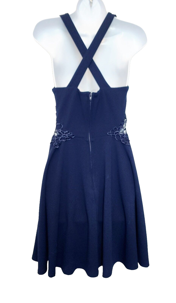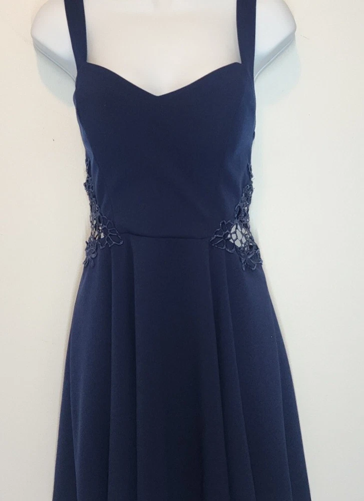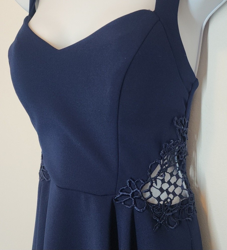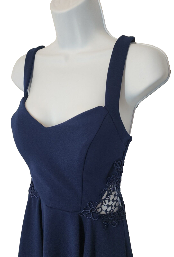 City Studio Dress Color - Navy Blue Laced Peek-A-Boo Sides Criss-Cross Back Straps Darted Chest/Body Sweatheart Chest Line Sew-in Padded Bra Lined Short Skirt Juniors's *Size - 9 MEDIUM Chest 30" Waist 28" Back Length 24" *Please see photos for measurements and details. Please see my other items for added shipping and item discounts!