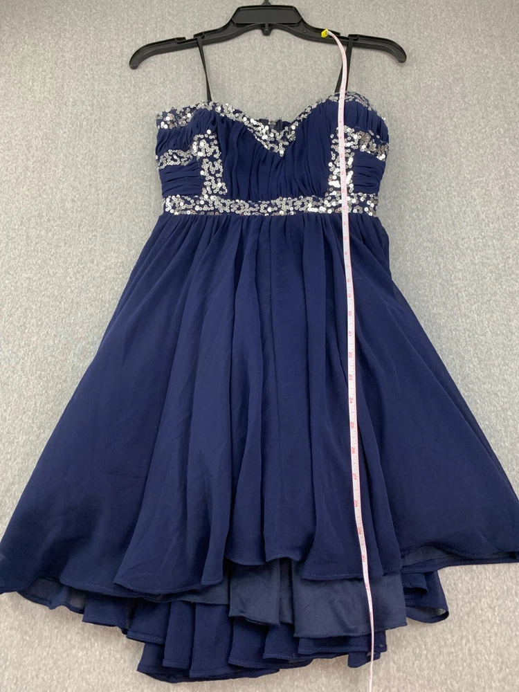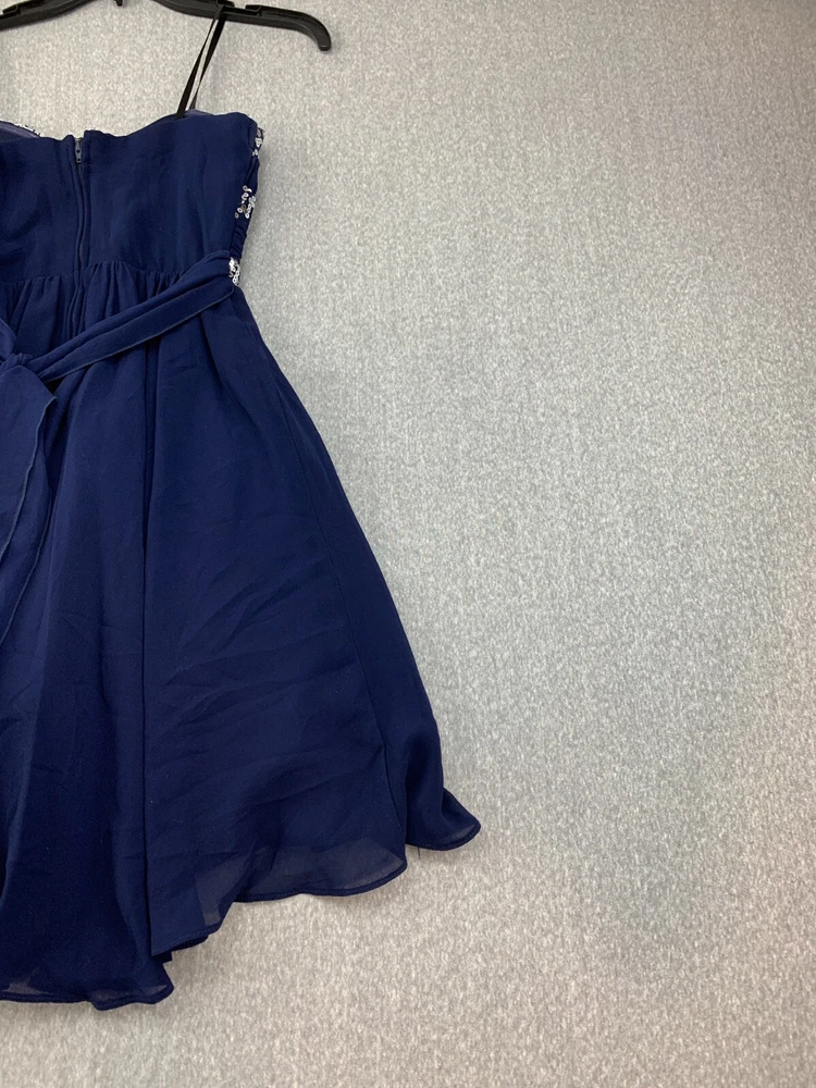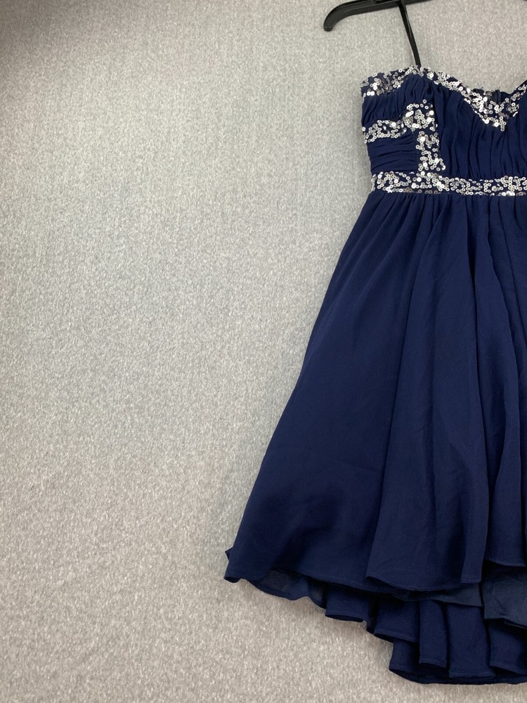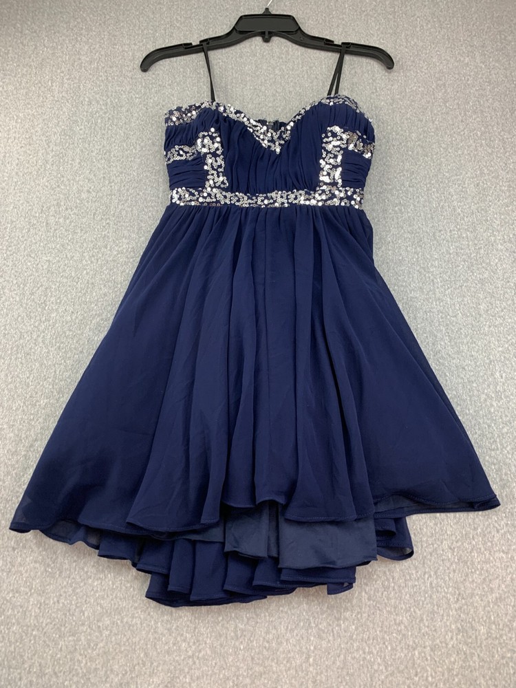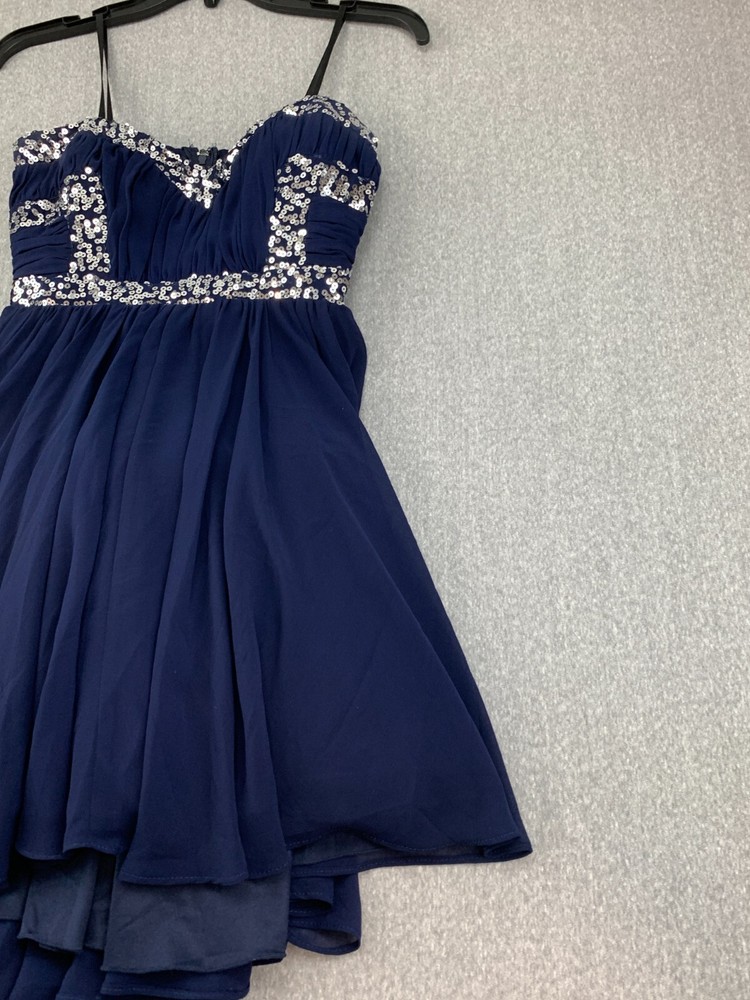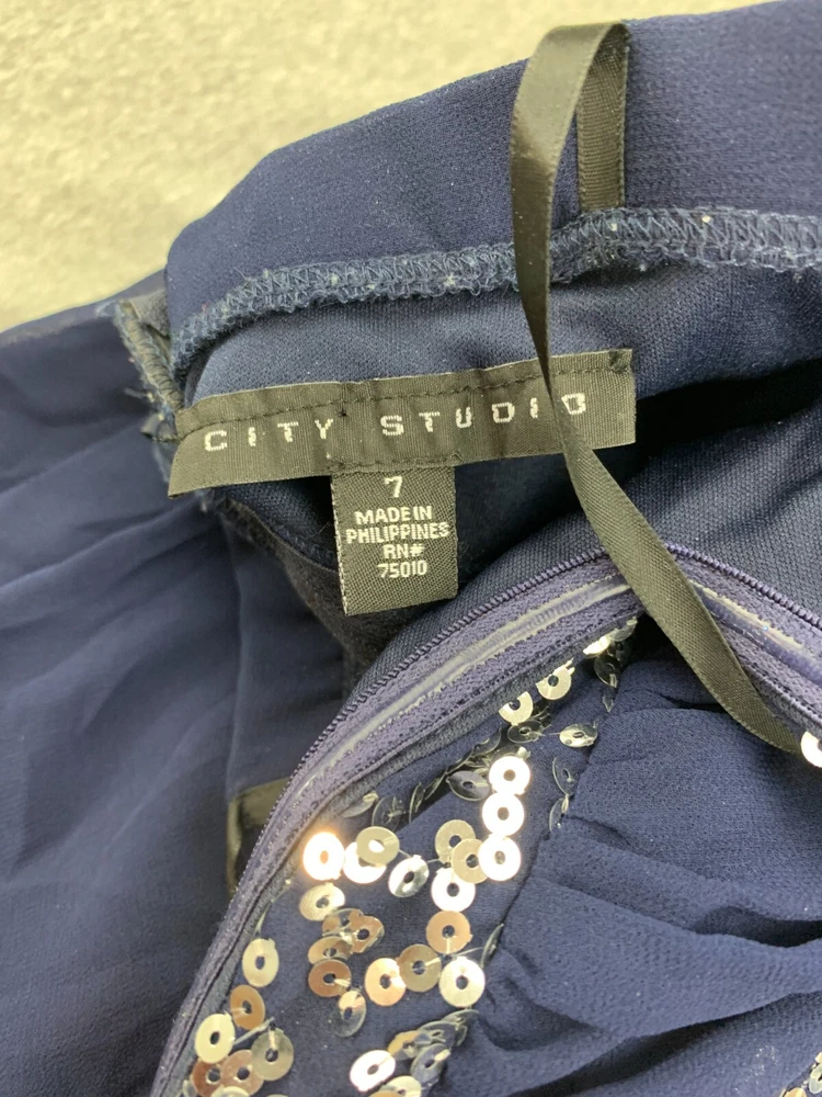 City Studio Pleated Chiffon Sequin Mini Dress Women Size 7 Navy Blue Sliver Prom Brand: City Studio Color: Navy Blue Silver Sequin Size: 7 Condition: Excellent Used Condition See Pics for Measurements