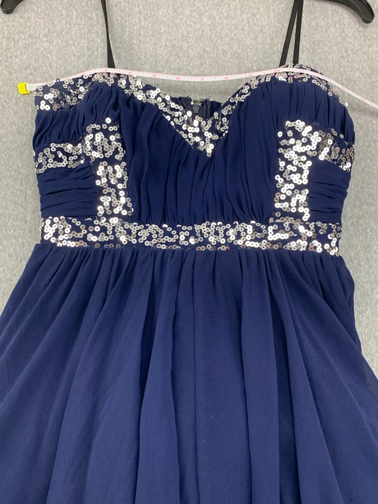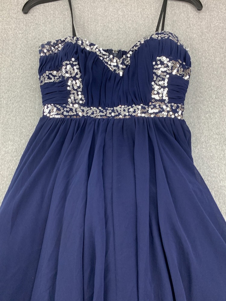 City Studio Pleated Chiffon Sequin Mini Dress Women Size 7 Navy Blue Sliver Prom Brand: City Studio Color: Navy Blue Silver Sequin Size: 7 Condition: Excellent Used Condition See Pics for Measurements...