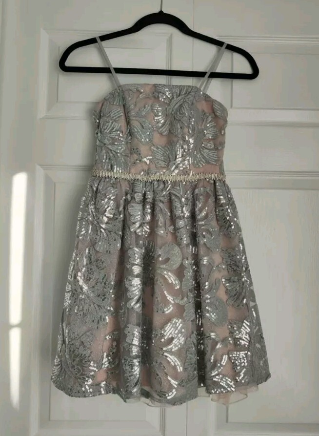 City Studio Sequin Formal Cocktail Dress in Teen Size 0. This glamorous dress features a sweetheart neckline, sleeveless design, and a zip closure. The pink color and sequin accents add a touch of sparkle, making it perfect for parties or formal occasions. Made of polyester and spandex with a bodycon style and short length, it offers a stretchy fit for comfort. Ideal for summer, fall, or spring events with a city-themed flair.