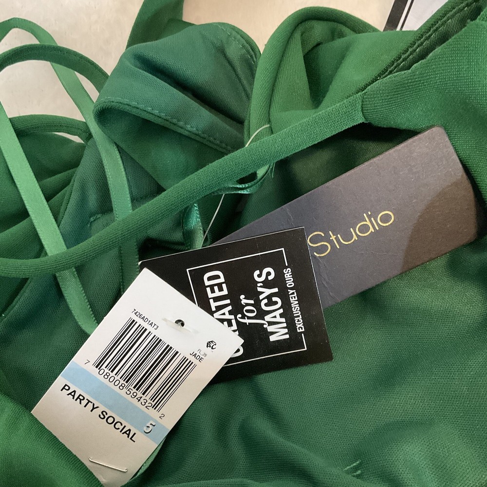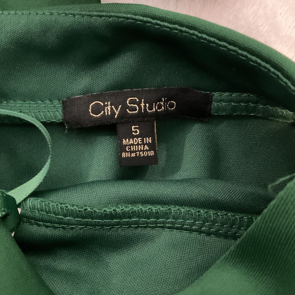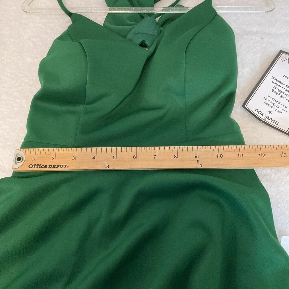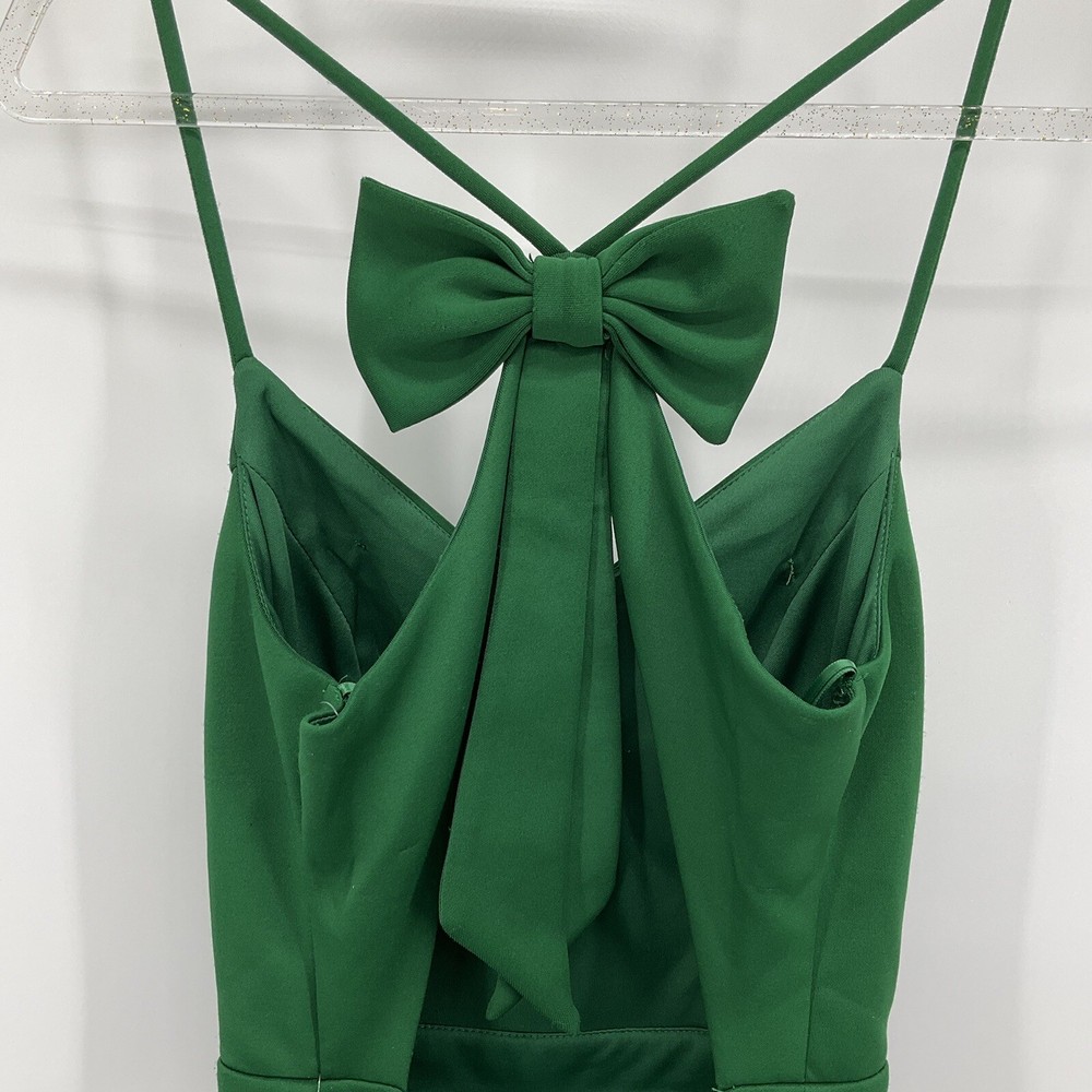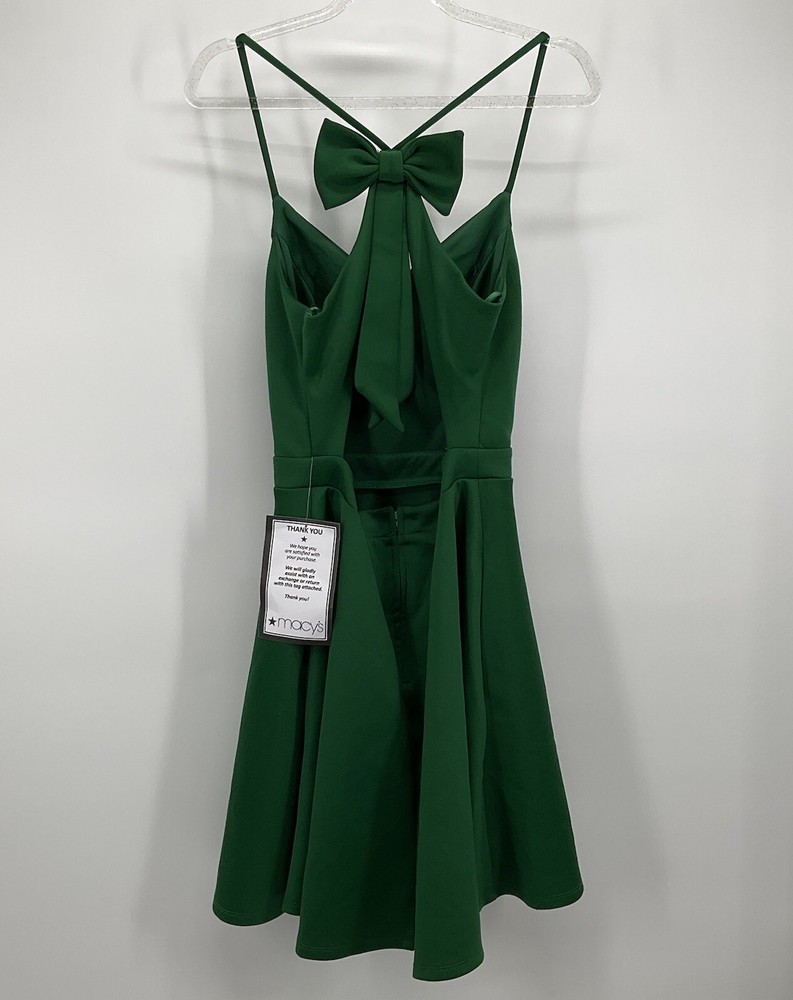 City Studio Size 5 Mini Dress Sweetheart Neck Fit Flare Jade Green Flowy Flouncy. Large bow on back....