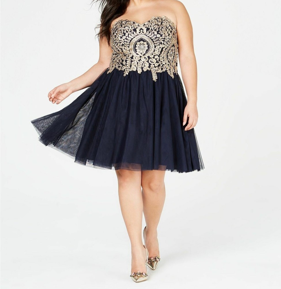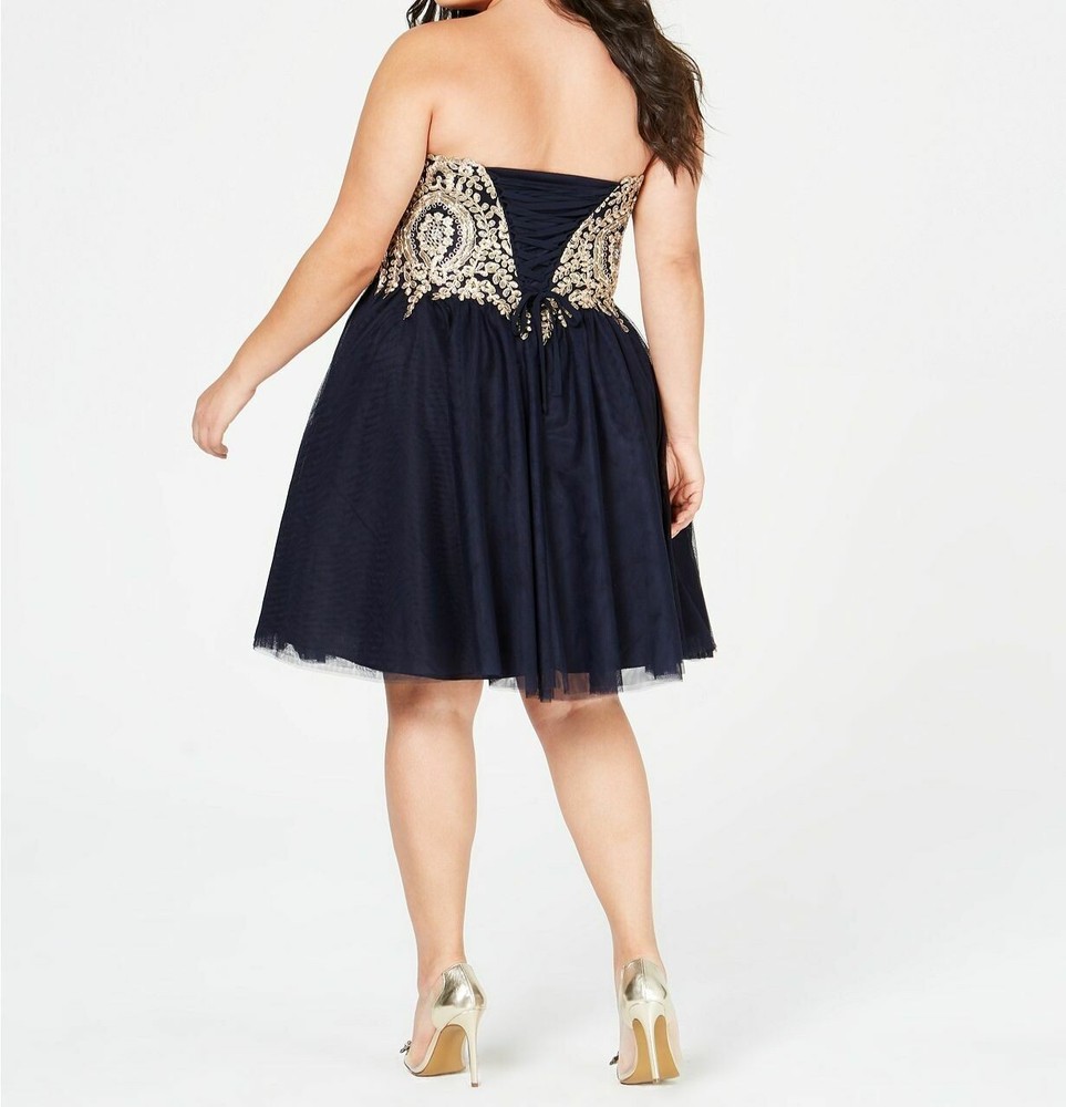 City Studio Womens Blue Trendy Strapless Embroidered Corset Dress Size 16W.