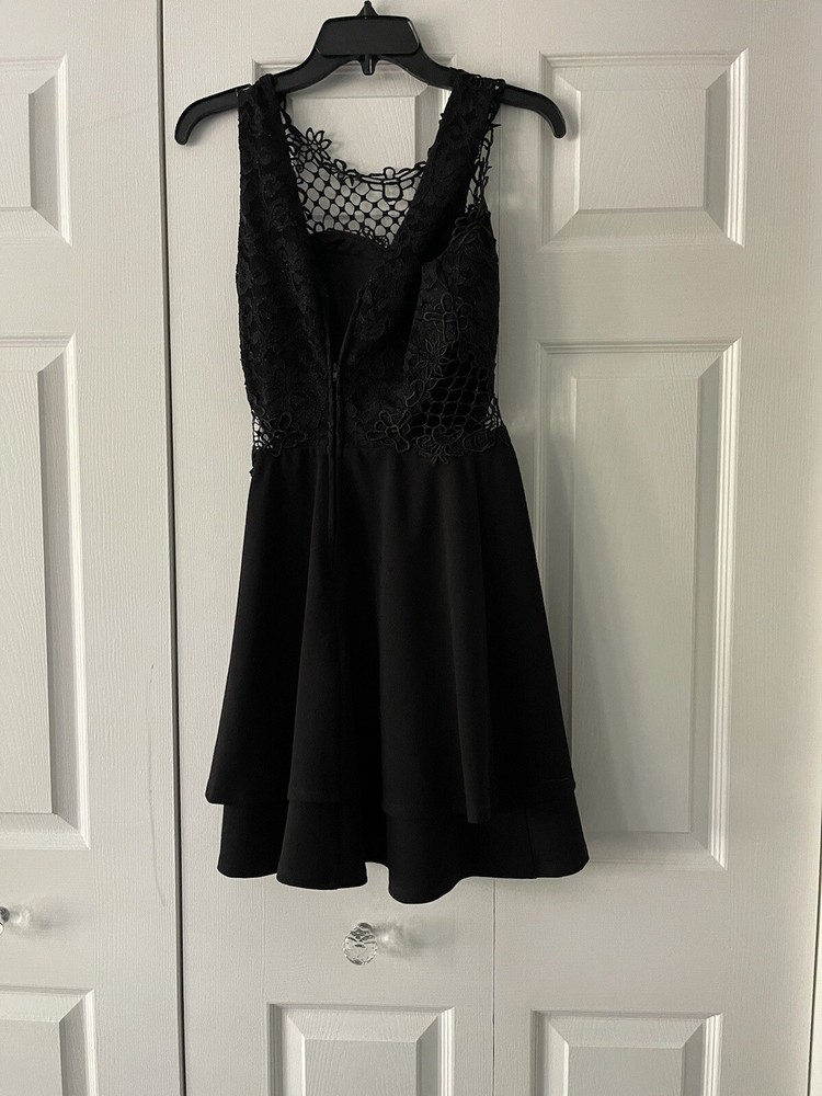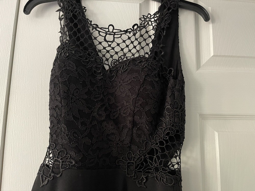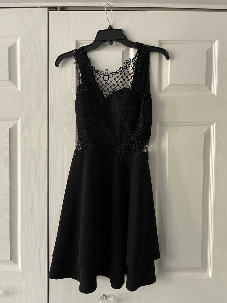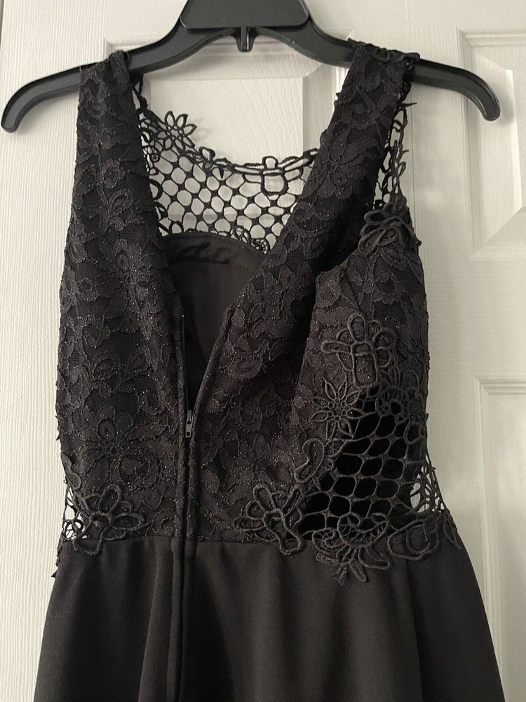 Embrace the floral elegance with this sleeveless black dress from City Studio. The sweetheart neckline and knee-length hemline make it perfect for formal occasions. The fit and flare style of this juniors' dress is accentuated by the lace fabric type. It has a zip closure at the back which adds to the convenience. This dress is made of polyester and requires dry cleaning only. It is a perfect addition to your wardrobe for any theme party or a city night out. The brand City Studio is known for its quality dresses and this one is no exception. Get ready to turn heads with this stunning black dress!